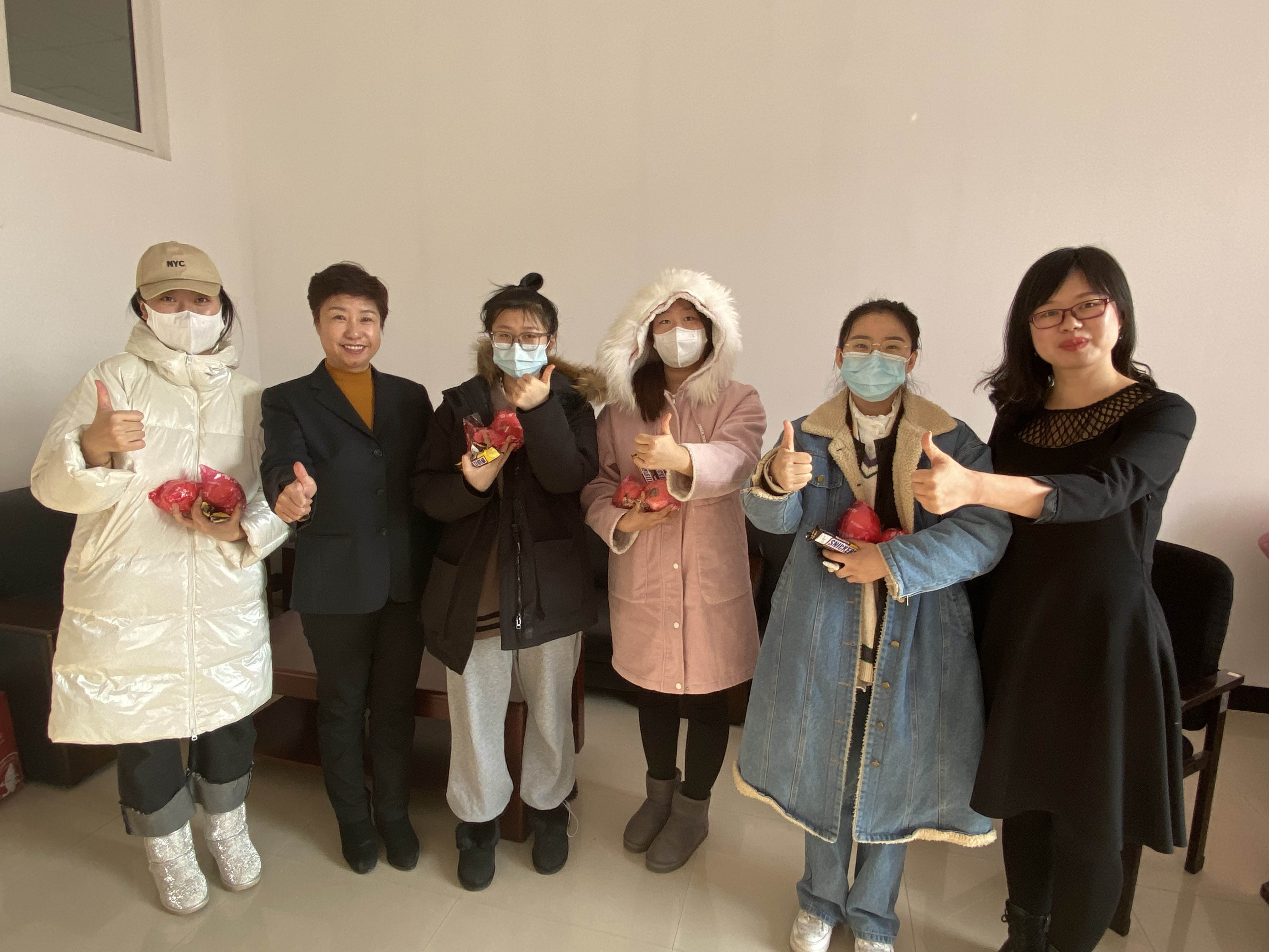 在外国语学院,党总支书记张杰、副院长巫张晶和辅导员梅一琦共同将师生祝福贺卡,寓意一马“苹”川的苹果、马到“橙”功的橙子和“棒棒”糖送到了同学们手中,希望同学们带着学院满满期望,信心满满奔赴考场,考出理想成绩,在最美的年华,为最真梦想尽最大努力。