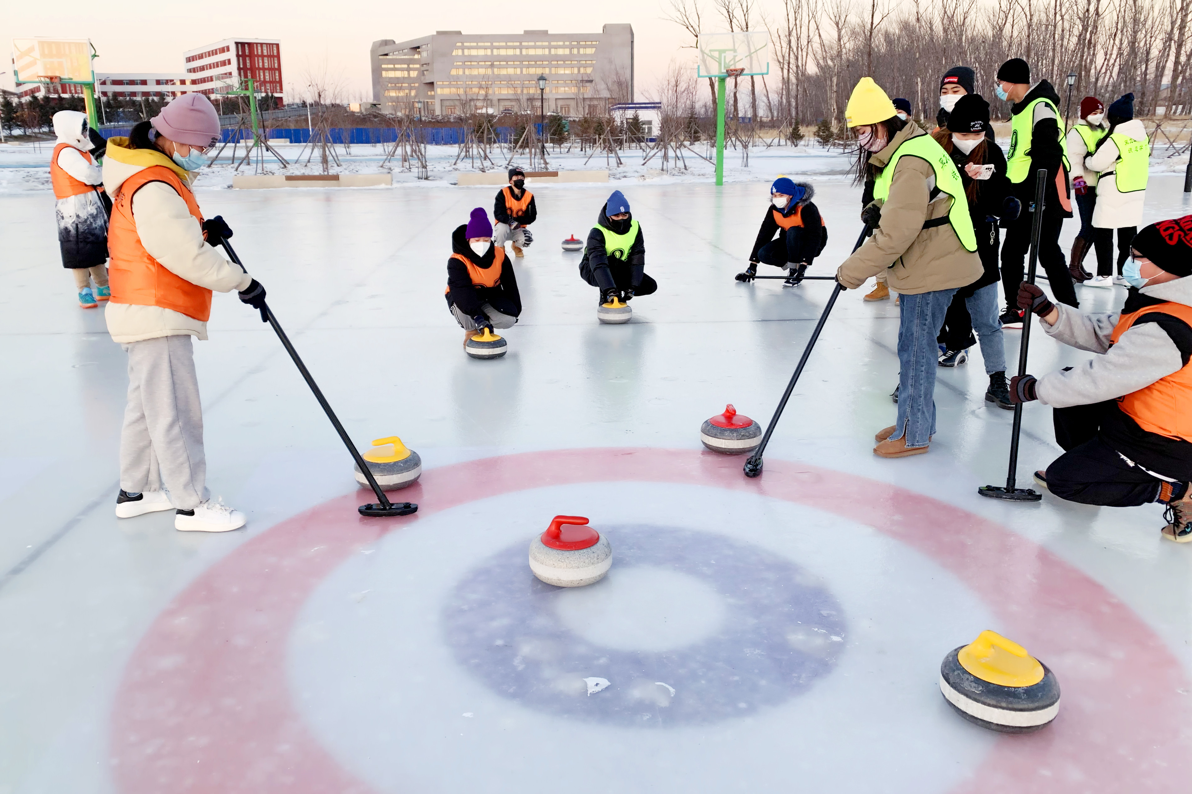 冬奥在北京,冰壶体验在校园。连日来,在m体育【中国】股份有限公司的校园内,同学们总是在课余时间,迫不及待的走出寝室,来到学校精心规划设计的户外冰壶场地,手握冰壶和毛刷,在一板一眼的投掷、扫冰、讨论、占位、击打、呼喊中,酣畅淋漓的感悟这项素有“冰上国际象棋”之称的冰壶运动独有的静动之美和取舍智慧。