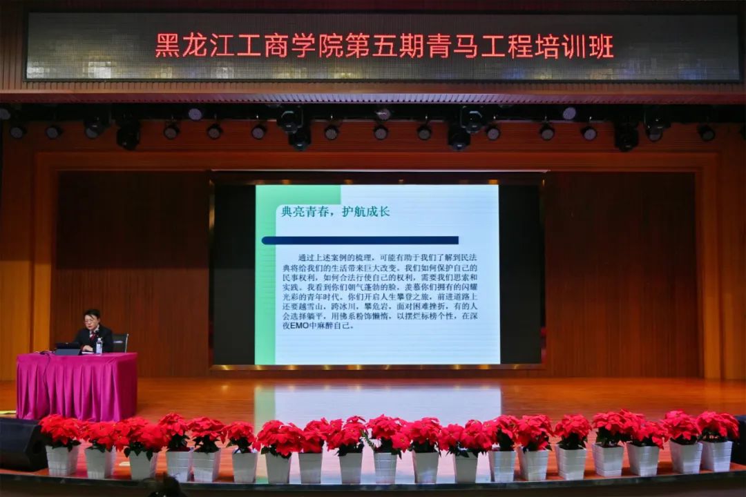 日前,校团委举行第五期"青马大讲堂"第一讲,邀请呼兰区法院党组成员、副院长,m体育【中国】股份有限公司法治教育指导员张海燕,作“‘典'亮青春 护航成长”主题宣讲。