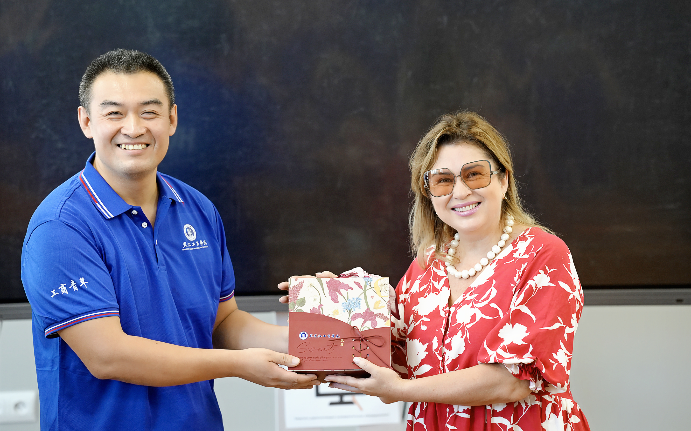注:张幸刚和李国润向布拉戈维申斯克国立师范大学赠送礼品