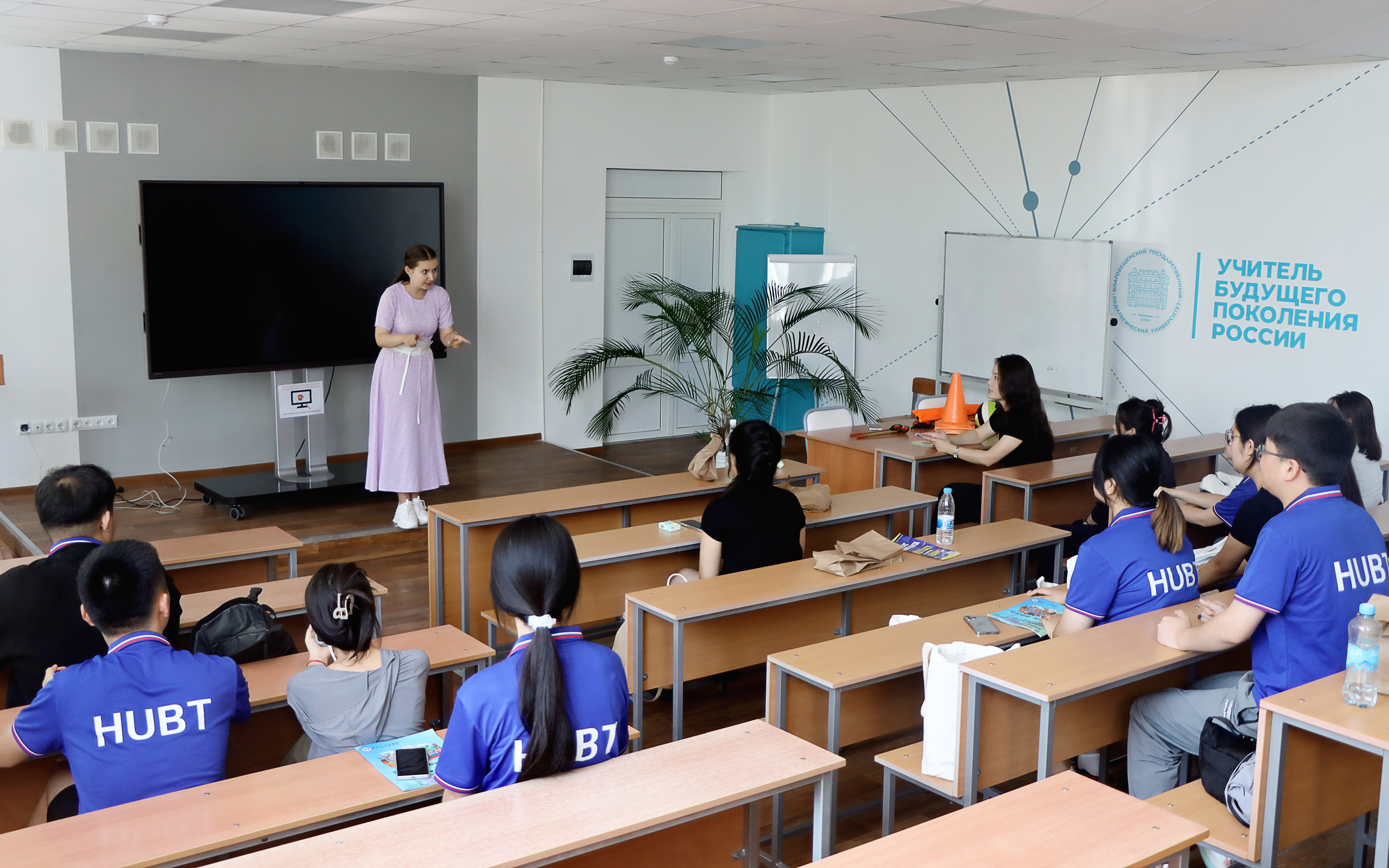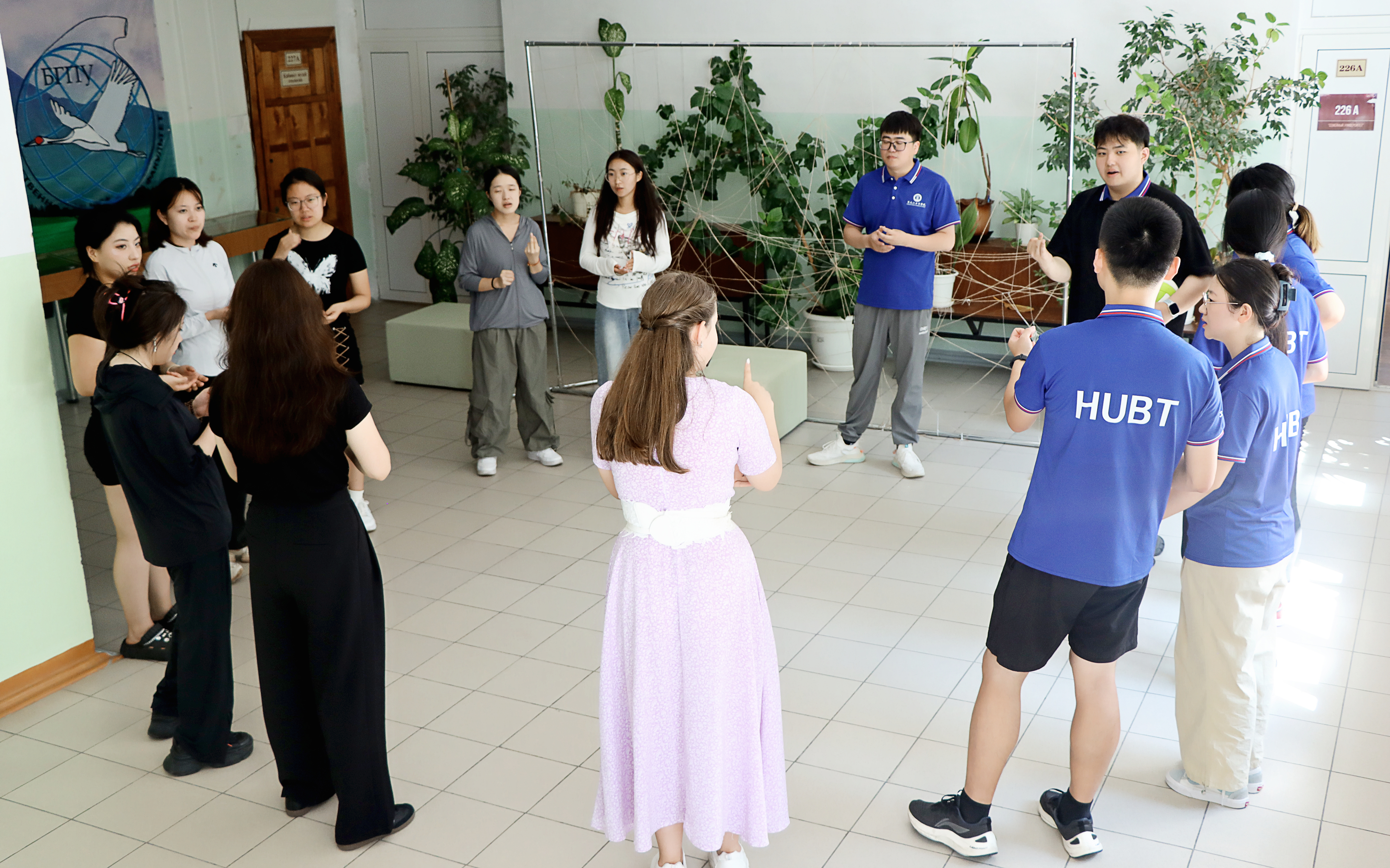 在布师大精心准备的大师音乐课上,同学们跟随舞蹈老师和歌唱老师学习极具俄罗斯传统艺术表现形式的民间舞蹈《勺子舞》;在语言认知课上,通过游戏互动、学习俄语绕口令等形式,了解俄语发音特点,感受不一样的教学方式;参观教学楼、体育馆和各类实训场所,详细了解大学课程安排,分享交流学习经验。