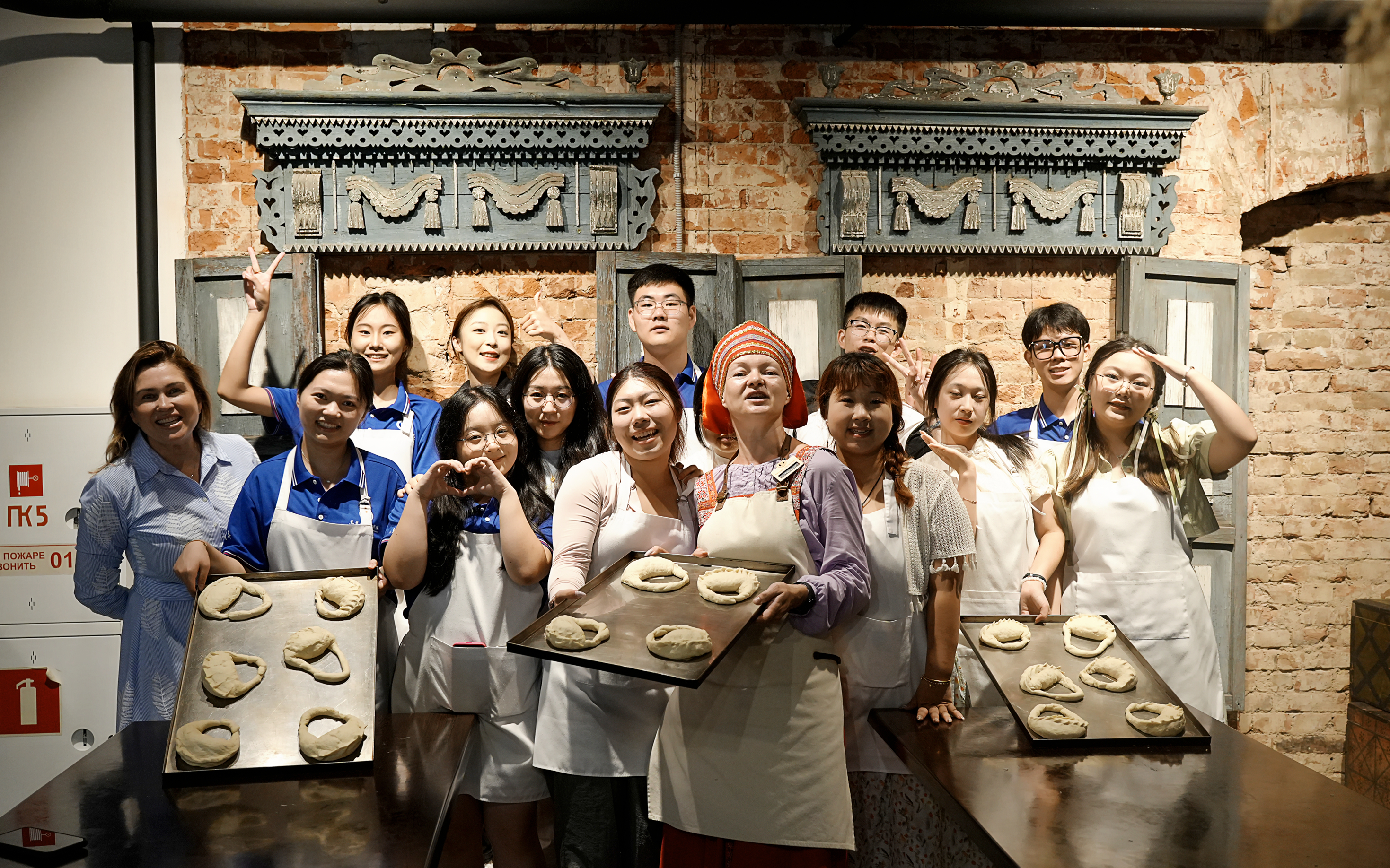 直观感受城市风貌、悠久历史的同时,同学们还零距离体验到俄罗斯传统文化和生活习惯。在传统村落伊万诺夫卡庄园、面包博物馆等地,穿戴体验鲁巴哈、萨拉凡等传统服饰,学习制作卡拉奇面包和手工布艺娃娃,品尝特色美食。