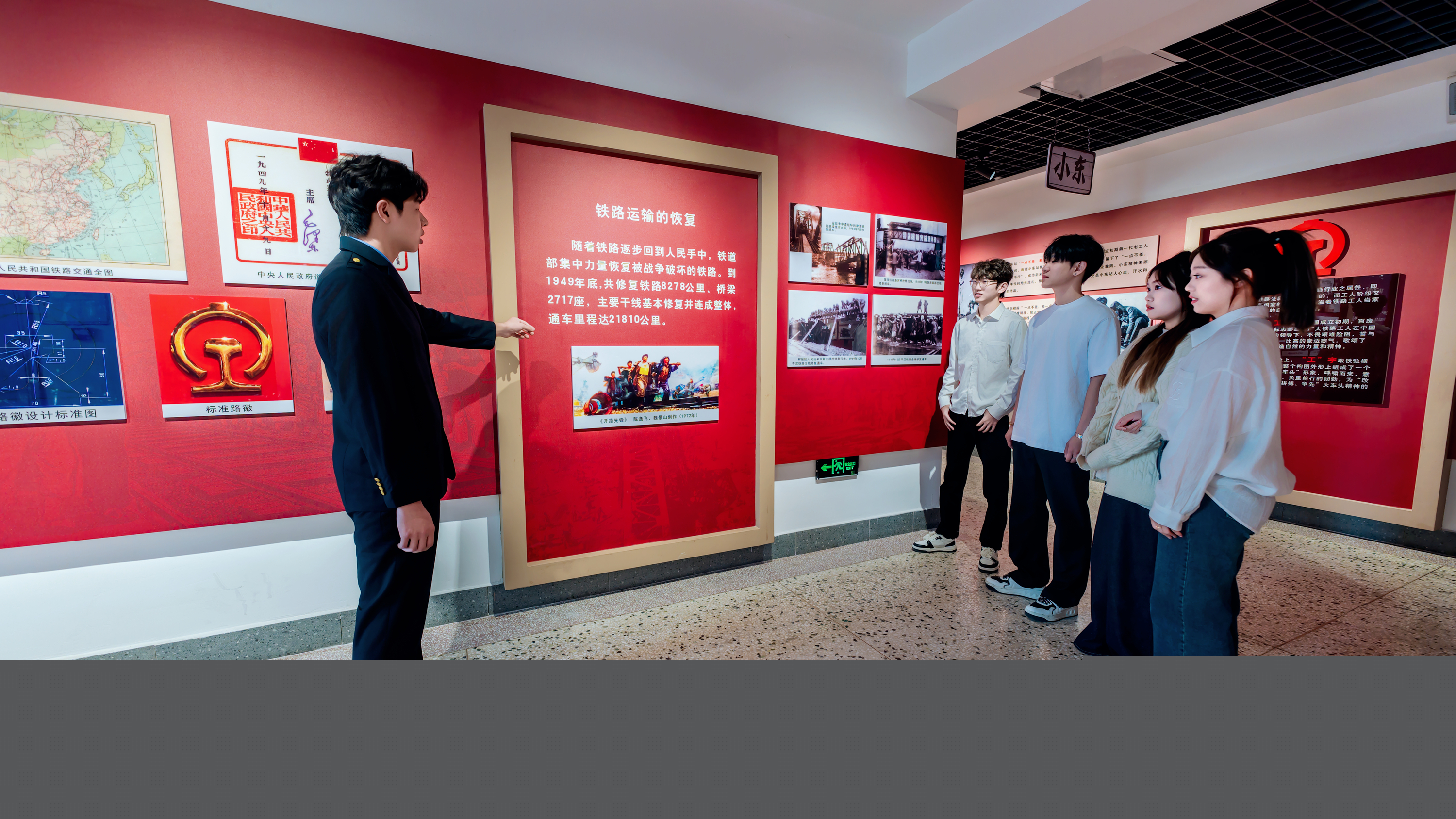 铁道文史研学社今年3月成立,前身是铁道文化馆学生志愿服务队,依托于坐落在校园内的国家AAA级旅游景区——黑龙江铁道文化馆,致力于搭建一个集学习、研究、交流、实践于一体的平台。遵循“文化‘两创’、项目引领、专业支撑、资源共享、协同育人”的原则,铁道学院聚力应用型高素质专业人才培养,探索构建“一心、两翼、三维、五学”专业社团实践育人模式,将“大思政课”、专业实践课、就业创业课嵌入到专业社团,培养跨学科研究能力,促进铁路文化的传承与创新。