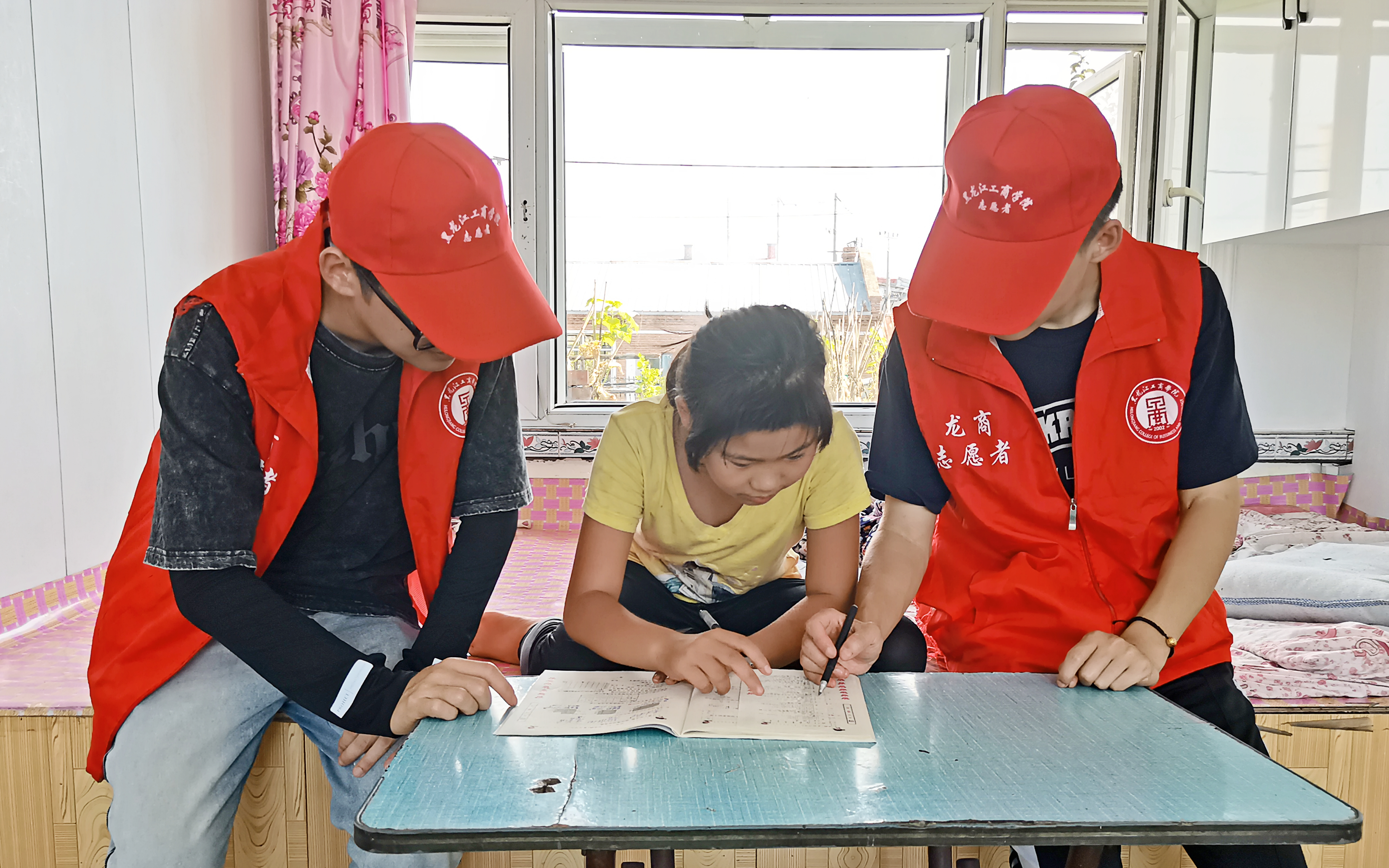 注:艺术与传媒学院师生在宾县英杰乡桦树屯为留守儿童辅导作业