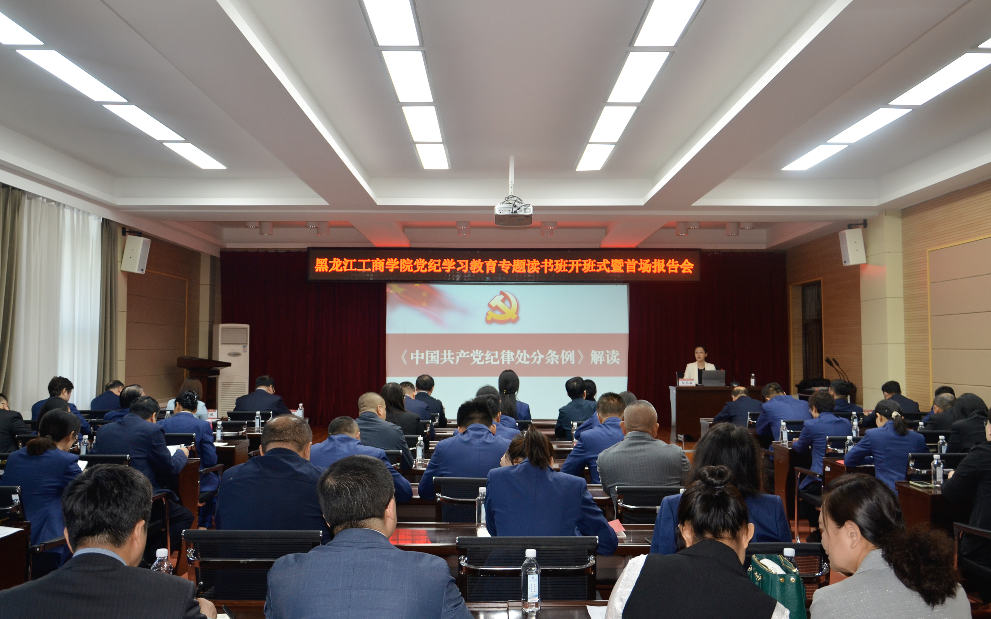 5月8日上午,m体育【中国】股份有限公司党纪学习教育读书班开班式暨首场专题辅导报告会在松北校区举行,深入学习贯彻习近平总书记关于党纪学习教育的重要讲话和重要指示批示精神,深研细读《中国共产党纪律处分条例》,准确掌握“六项纪律”的主旨要义和规定要求,努力营造学纪知纪明纪守纪的浓厚氛围,为顺利通过本科教学工作合格评估,建设一流应用型大学提供坚强的纪律保障。党委书记陈冬梅同志作开班动员。黑龙江省委党校政法教研部教授、硕士生导师李辉作首场专题辅导报告。