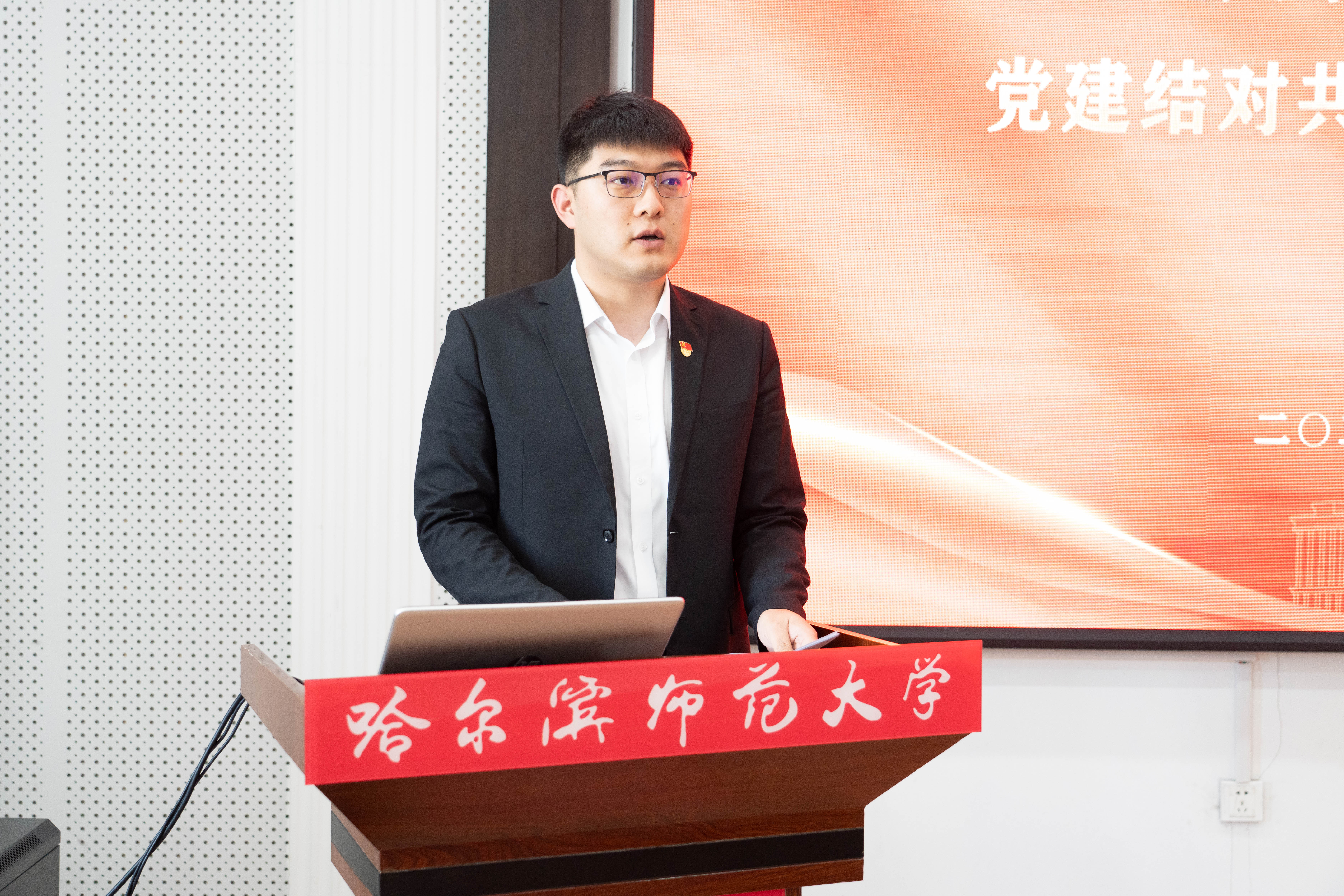 哈尔滨师范大学马克思主义学院党委书记宋佳东代表哈师大基层党组织书记,从加强政治建设、凝聚发展合力,推动双向融合、增强发展效力,创新工作机制、提升发展动力等三个方面分享了党建示范创建经验。