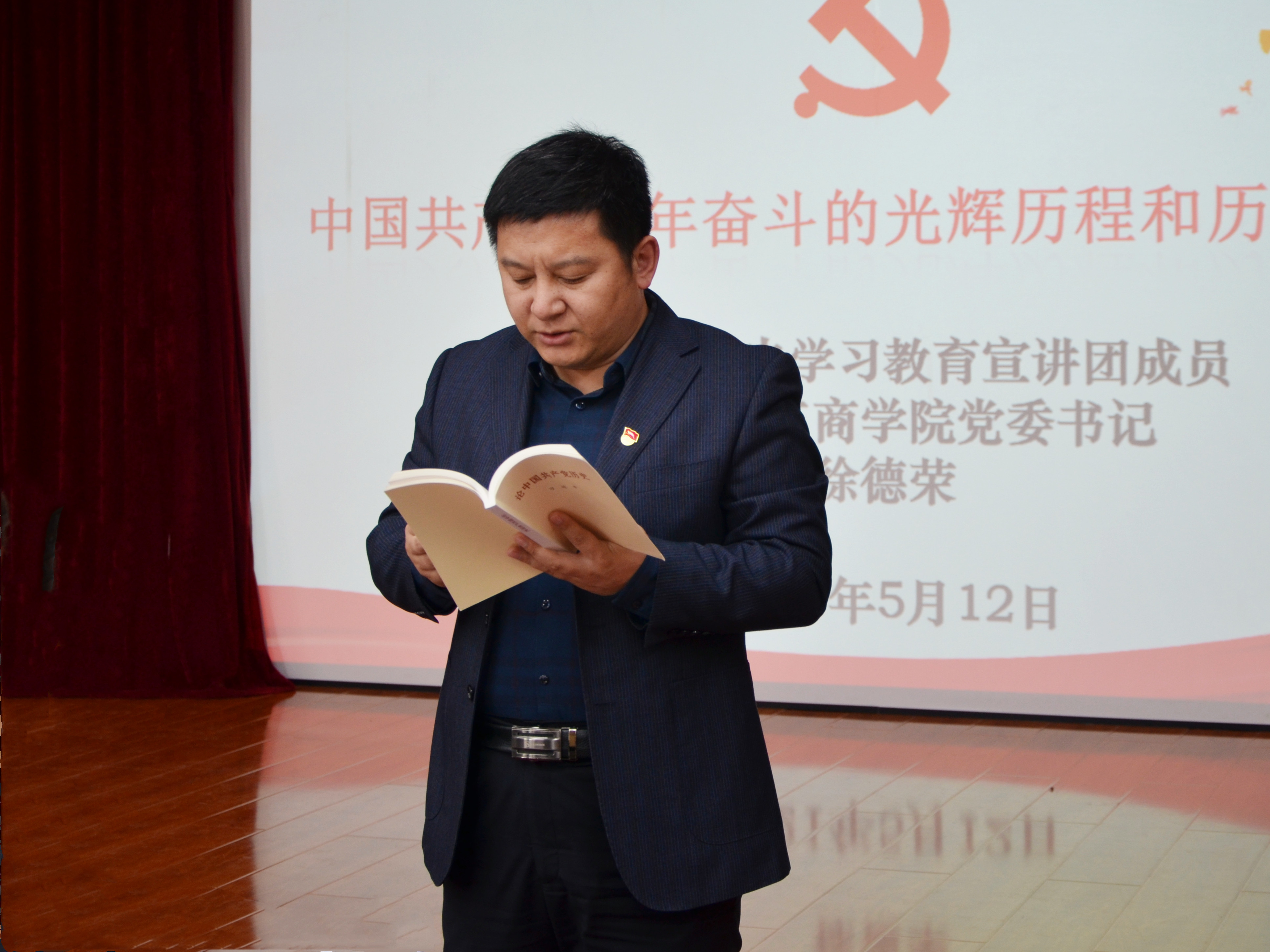 5月12日,学校党委举办副处级以上领导干部第二次党史学习教育读书班暨专题培训班,深入学习贯彻习近平总书记关于党史学习教育的重要论述,紧紧围绕学党史、悟思想、办实事、开新局,高标准高质量推进党史学习教育。省高校党史学习教育宣讲团成员、校党委书记徐德荣主持会议并作专题辅导报告。