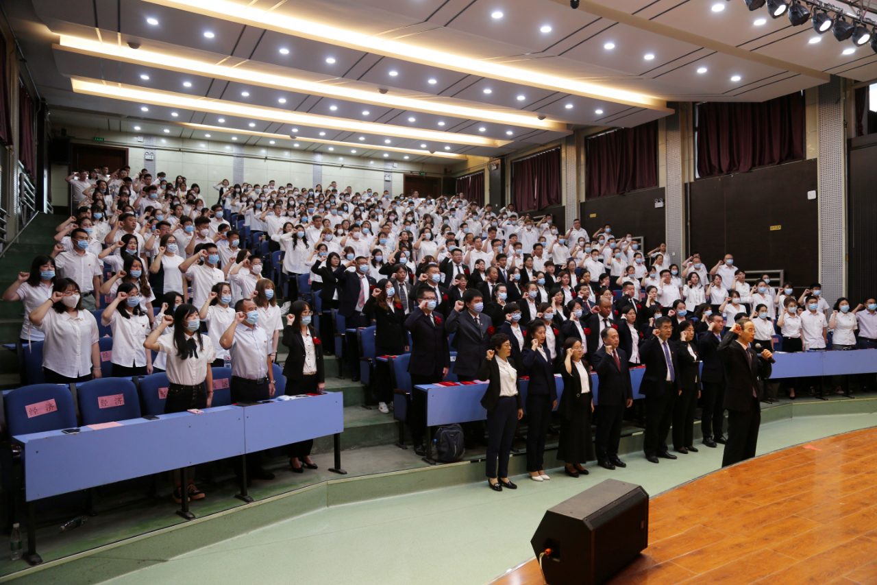 刘来祥在主持大会时强调,全校各级党组织和广大党员要深学细悟笃行习近平新时代中国特色社会主义思想,不断提高政治判断力、政治领悟力、政治执行力,全面贯彻党的教育方针,不忘初心、牢记使命,以务实的作风、饱满的热情和强烈的责任感,积极投身到推进高水平应用型工商大学的建设之中,以高质量党建引领和保障学校高水平发展。