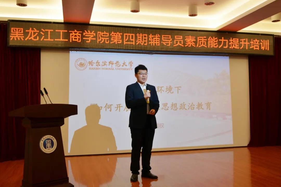 学生处邀请到第七届全国高校辅导员素质能力大赛一等奖获得者、哈尔滨师范大学马克思主义学院辅导员刘国权,为全体学员做题为“新媒体环境下,如何开展大学生思想政治教育”的讲座。