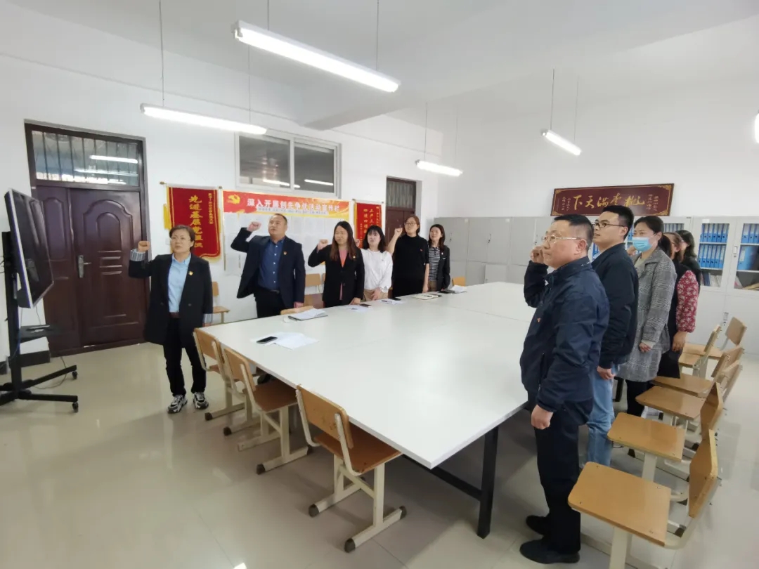 “我志愿加入中国共产党,拥护党的纲领,遵守党的章程……”铿锵有力的誓言回响在党员之家,师生党员通过重温入党誓词,更加坚定了理想信念,激发了奋斗力量,决心要牢记初心使命,努力用实际行动为党旗增辉添彩。党史是最好的教科书。在主题党日中,各基层党支部依托“读、写、讲、用”四维一体的理论武装模式,组织党员师生认真读经典、学原著,集中观看红色影片,开展交流研讨,教育引导师生党员从党的百年伟大奋斗历程中汲取继续前进的智慧和力量。