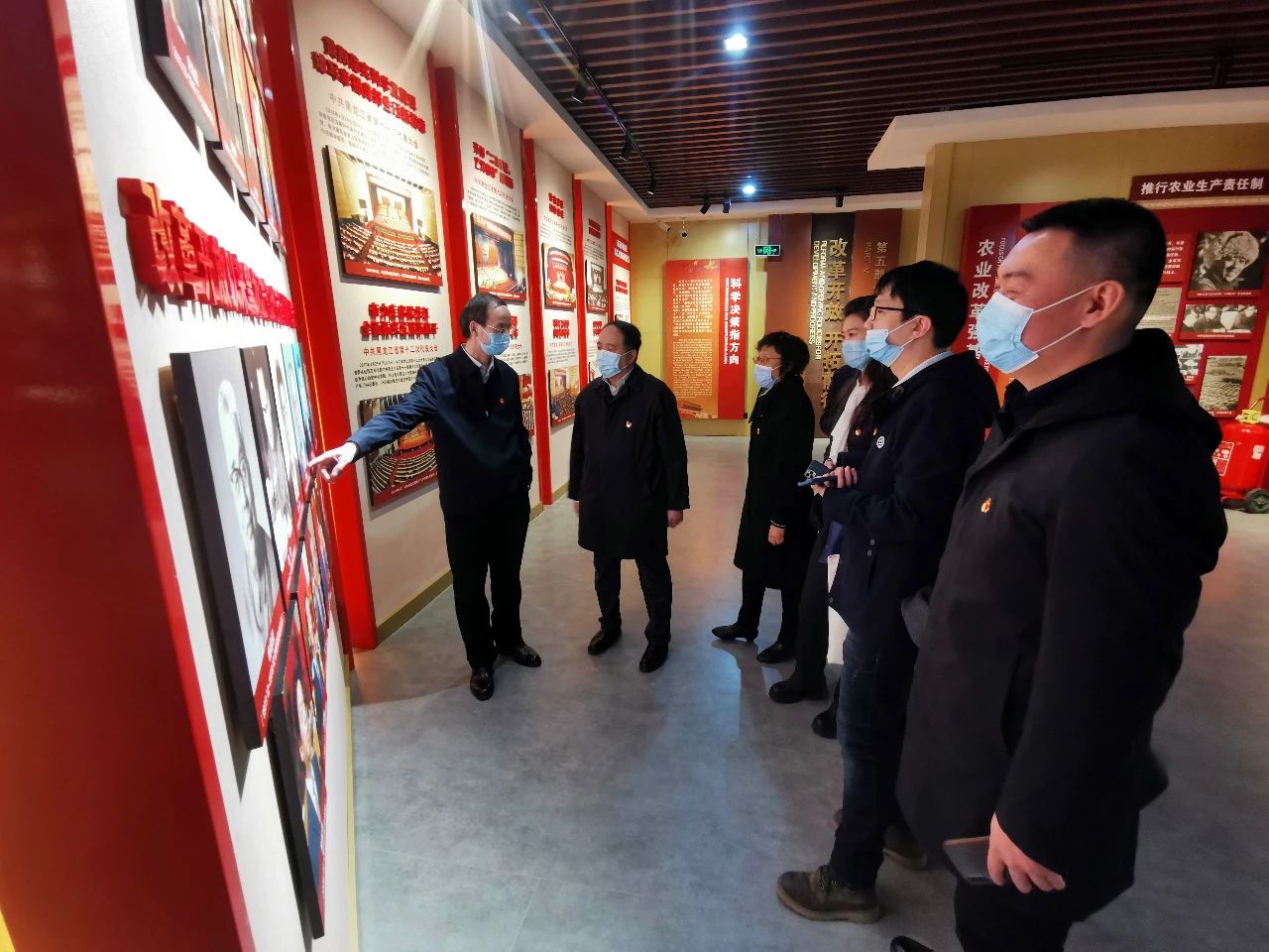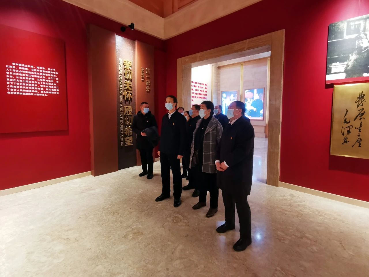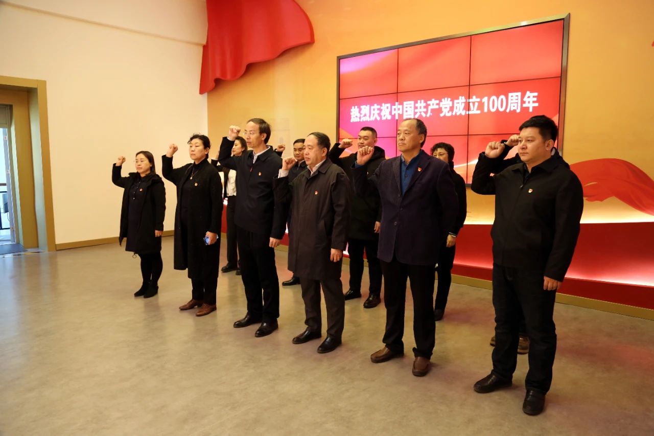 参观结束后,在徐德荣领誓下,全体党员干部面向鲜红的党旗,举起右手,重温入党誓词,夯实初心使命。