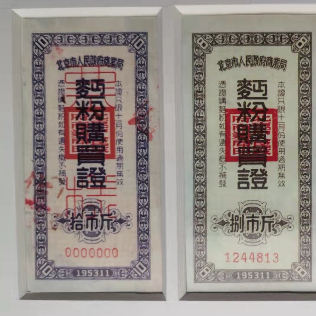 1953年11月1日,北京开始对面粉实施计划供应,定量分配,“面粉购买证”正式与北京人见面。这个小证件长10.1厘米,宽5.3厘米,共有4市斤、8市斤、10市斤3种面额,是北京市发行的第一套粮票,又称“开门票”。