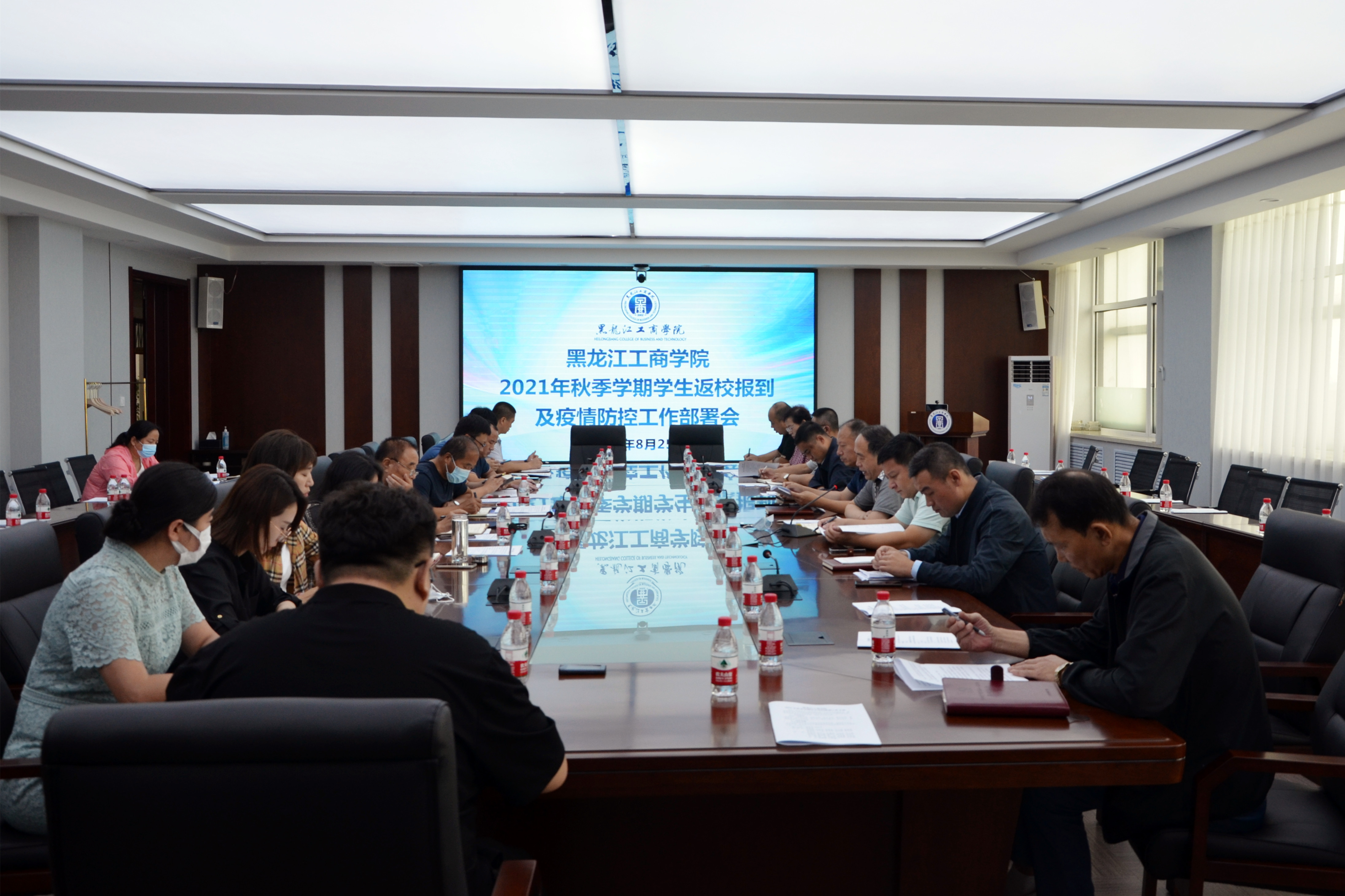 8月25日上午,学校秋季学期学生返校报到暨疫情防控工作部署会议在松北校区会议室召开。常务副校长王利民主持会议并讲话,副校长张幸刚、总会计师王云福、校长助理慎海歌出席会议,学校疫情防控工作领导小组成员参加会议。