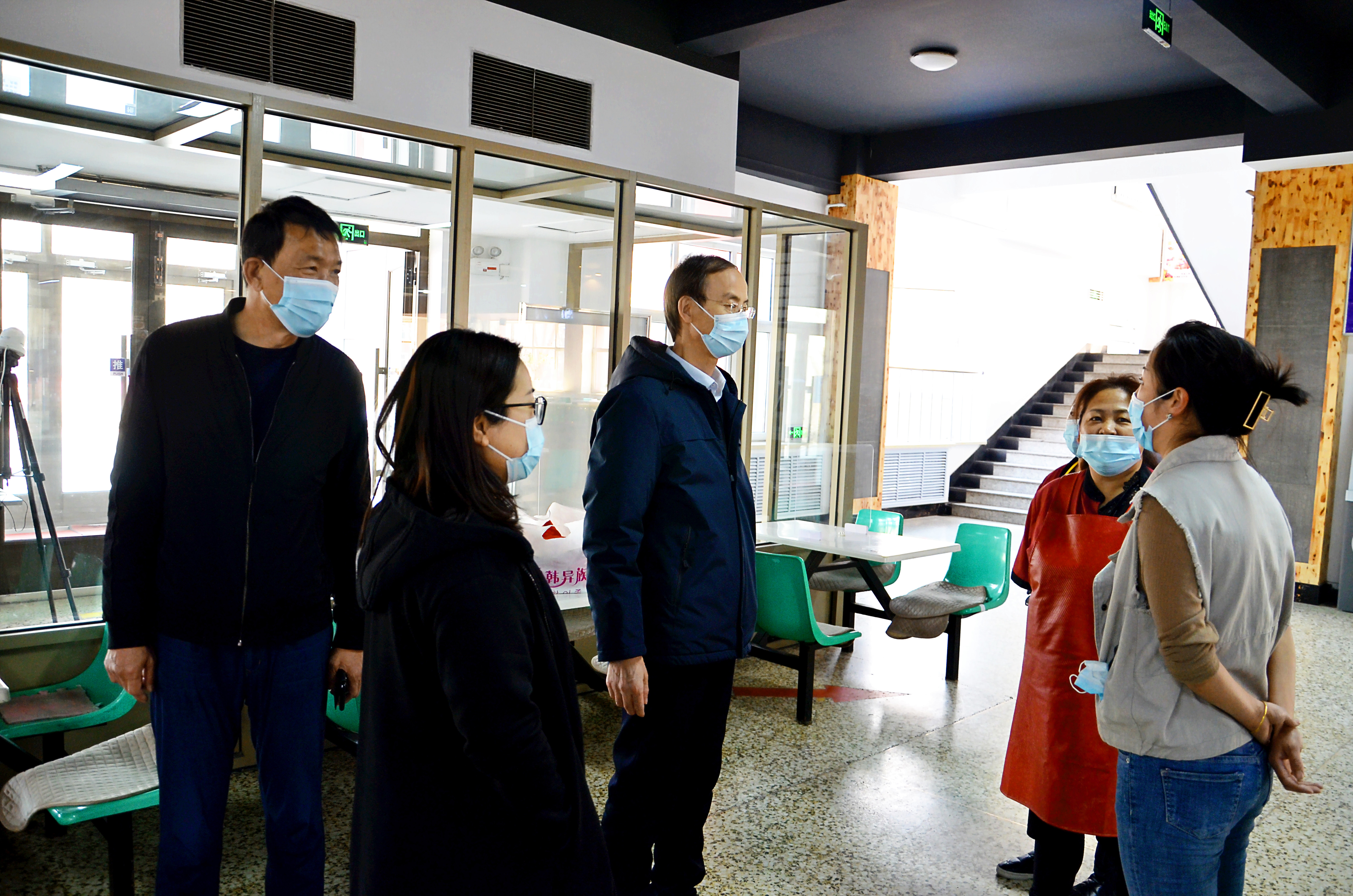 4月18日,党委书记徐德荣、执行校长秦智伟、常务副校长王利民、党委副书记王晓伟等校领导分别带队到食堂、校内商户、宿舍、视频监控中心、门岗等重点场所,慰问坚守工作岗位的教职工,了解住校办公、学生管理、文化活动开展情况,听取意见建议,检查指导疫情防控和校园封闭管理等工作。
