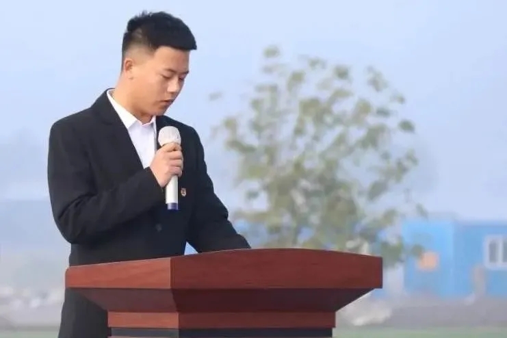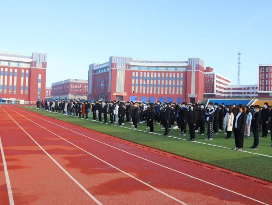 付海威代表我校全体学生发出国旗下倡议,要识大局,知责任,听从学校防疫指挥,理性有序地配合学校疫情防控工作;勤洗手,多饮水,出宿舍佩戴口罩;要文明自理,尊师重道,诚信知礼,共同营造安全有序的校园环境。