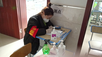 回到家中,王梦迪即义无反顾地加入了家乡社区抗疫志愿者队伍。为保障社区的核酸检测工作顺利进行,她积极帮助社区工作人员连夜入户登记居民信息,从早上八点至次日凌晨一点多,没有一丝松懈。第二天早上六点,她又早早地出现在社区集中核酸检测点,协助社区工作人员登记前来进行核酸检测的居民信息。核酸检测时人员流动较大,为保证空气流通,检测点的窗户需一直保持开放状态,作为青年志愿者的她,主动坐在距离窗户最近的座位,纵然双手冻得僵硬,也不曾有丝毫抱怨,一直坚持到最后的核酸检测工作结束。电脑录入居民信息、向上级防疫部门上报社区防疫工作进展、打印分发第二次核酸检测票据等工作便成了王梦迪的日常。