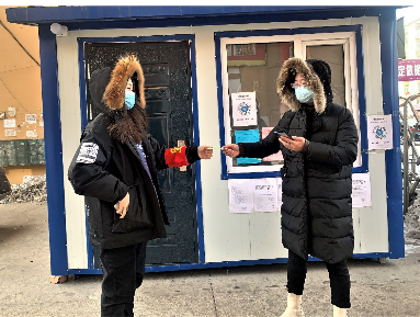 安曼曼在家乡所属社区的青年志愿者服务队中负责排查外来人口及近期从中高风险地区返乡人员、进行登记进出人员信息,对来往人员进行测温登记等工作。寒风中坚守岗位,她常说一句“没事,我不累。”