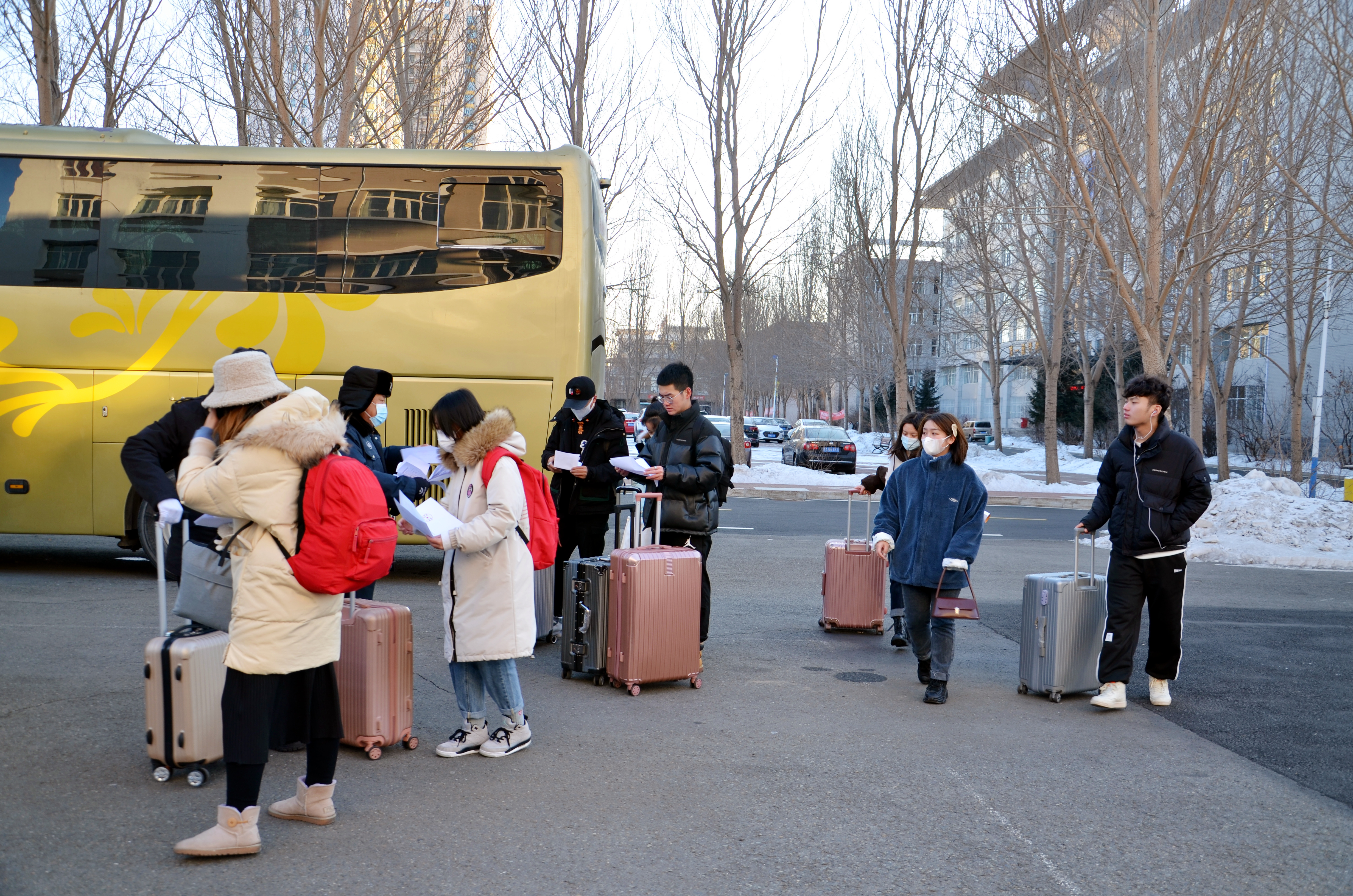 民以安为乐,国以安为兴。自正式启动学生寒假返乡工作以来,学校秉承“一切以学生为中心”的理念,以更加细致、高效、严谨的作风,加强服务保障,用一项项暖心服务守护每名学子平安归家。 出行更放心、回家更安心、师生更舒心。自12月21日起,学校专门安排29辆“点对点”送站车,分批驶离两个校区,分别发往哈尔滨站、哈尔滨北站、哈尔滨西站和哈尔滨太平机场,实现了学生不出校园即上车、下车即进站的无缝衔接和闭环离校。早上7点准时,第一批载满离校学生的“爱心送站车”有序驶出校园,将学生们安全送至火车站和机场,离校的同学们踏上了回家的路,按下了寒假启动键。截至1月22日,已累计发送76车次,提供送站服务5600人次。