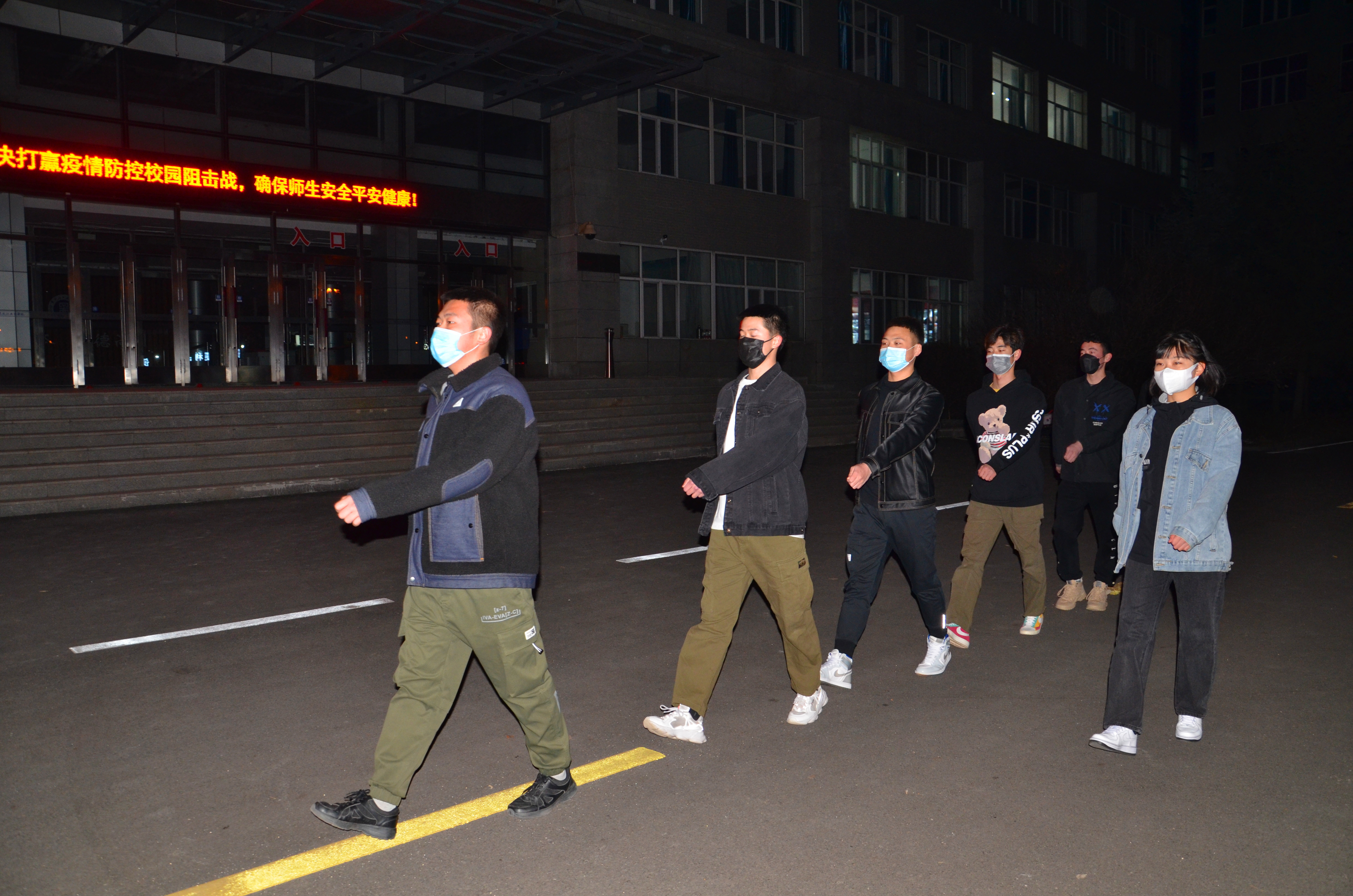 出操、队列、巡逻、疏导……每到晚6点,管理学院抗疫先锋队7名成员,就会准时出现在主楼门前,在退伍女战士张敏娜同学的带领下,昂首阔步巡查遍校园的每一个角落,力所能及为校园“铁桶式”封闭管理做出贡献。