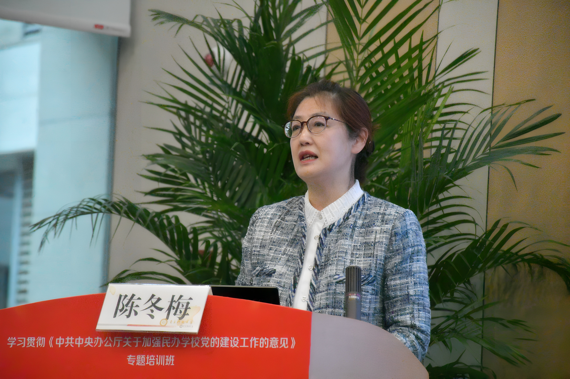 △党委书记陈冬梅在学习贯彻《中共中央办公厅关于加强民办学校党的建设工作的意见》专题培训班上作《聚力高质量党建 引领高质量发展》典型发言