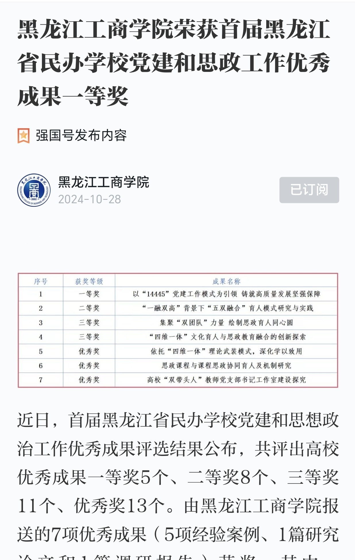 △“商务+”联合教学团队党支部获评黑龙江省首批“双带头人”教师党支部书记工作室,并入选第四批“全国党建工作样板支部”培育创建单位