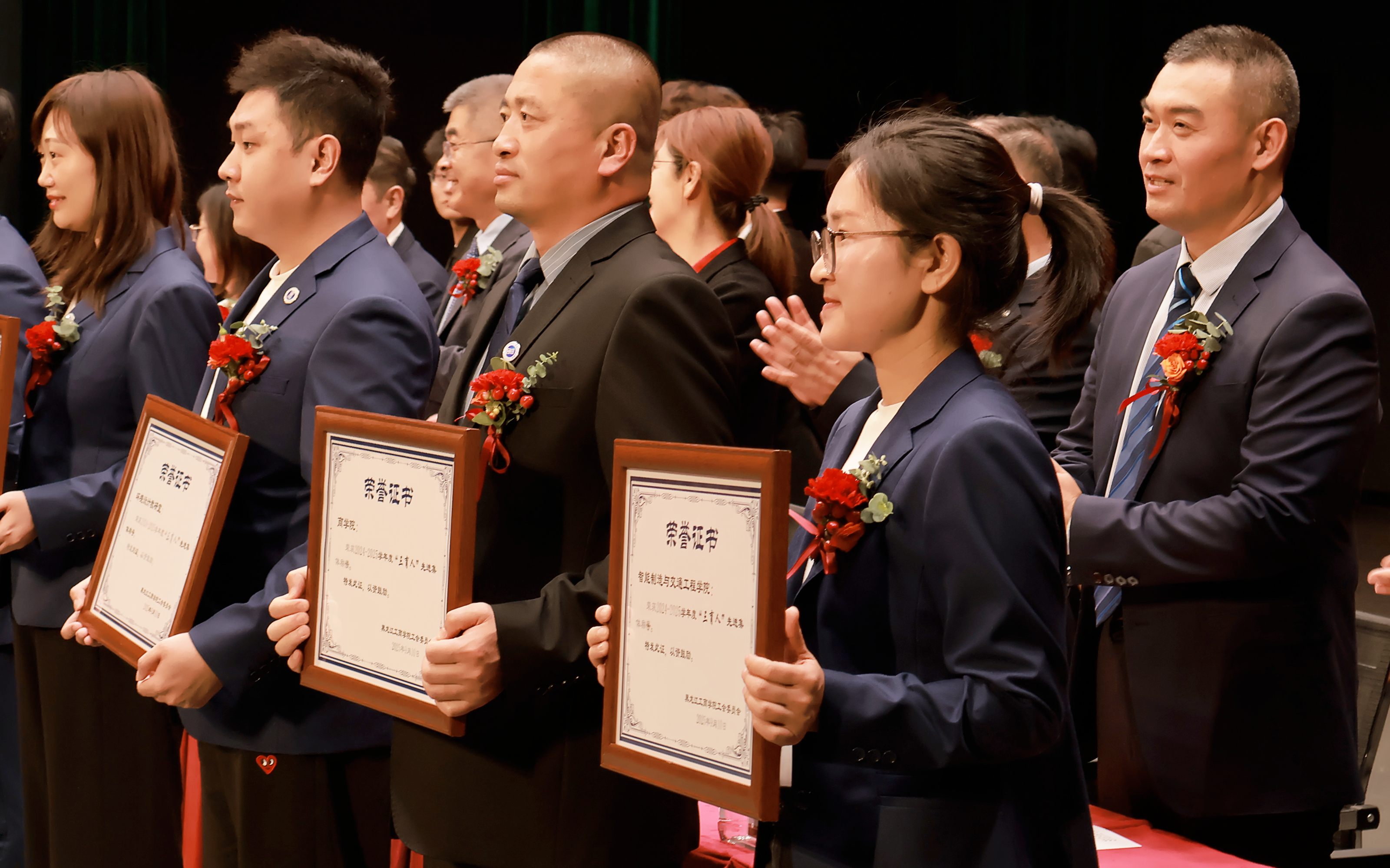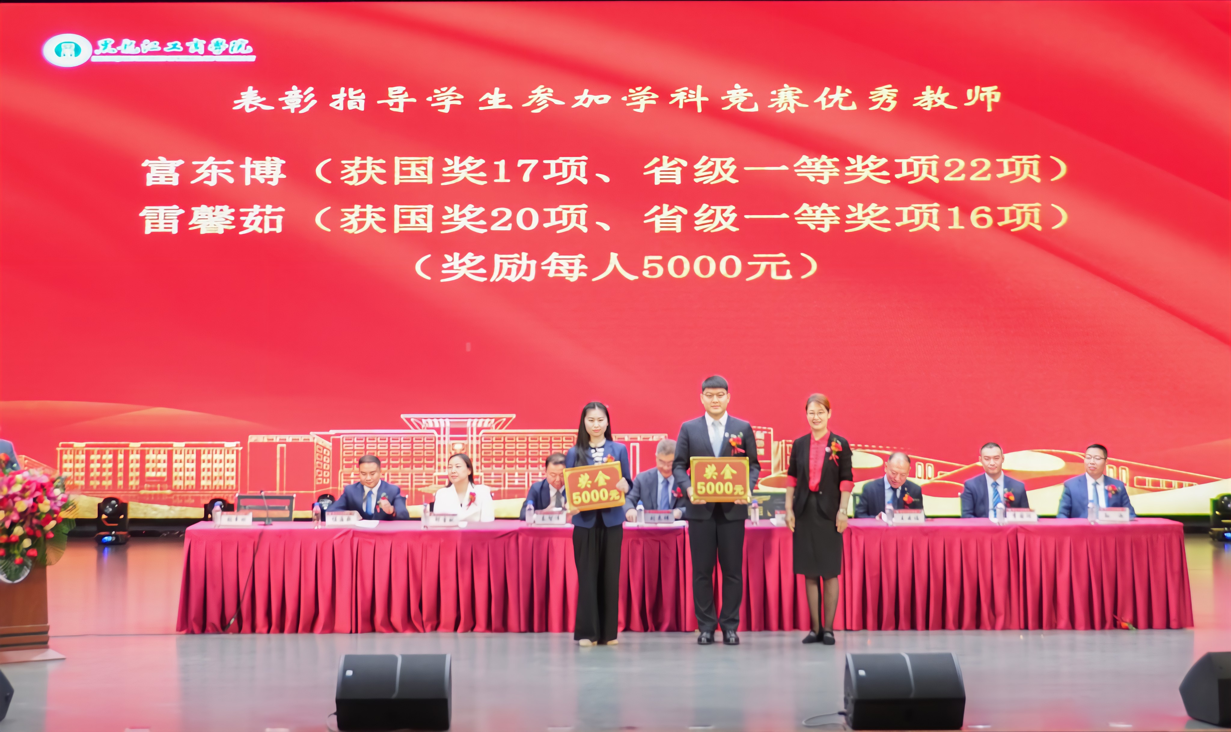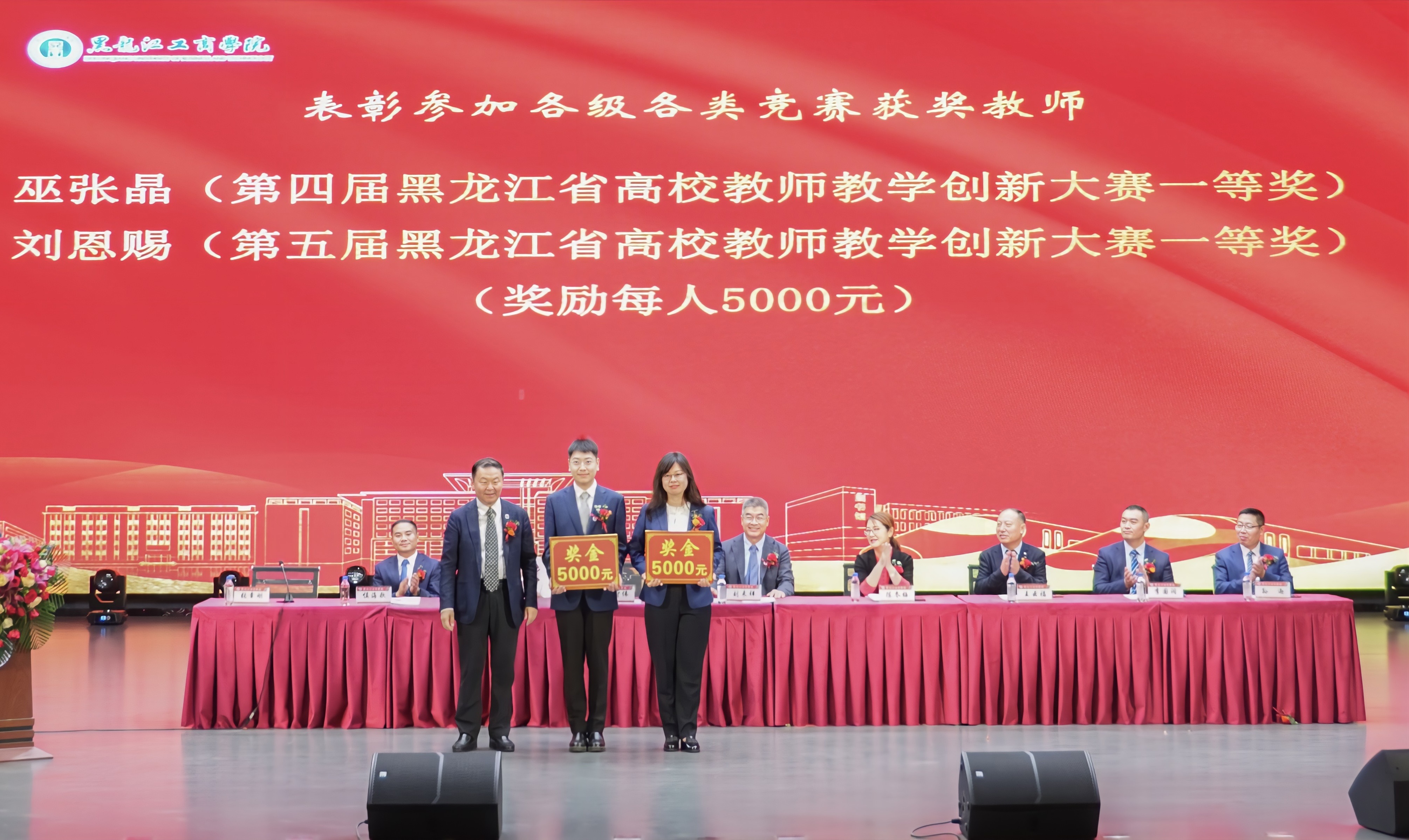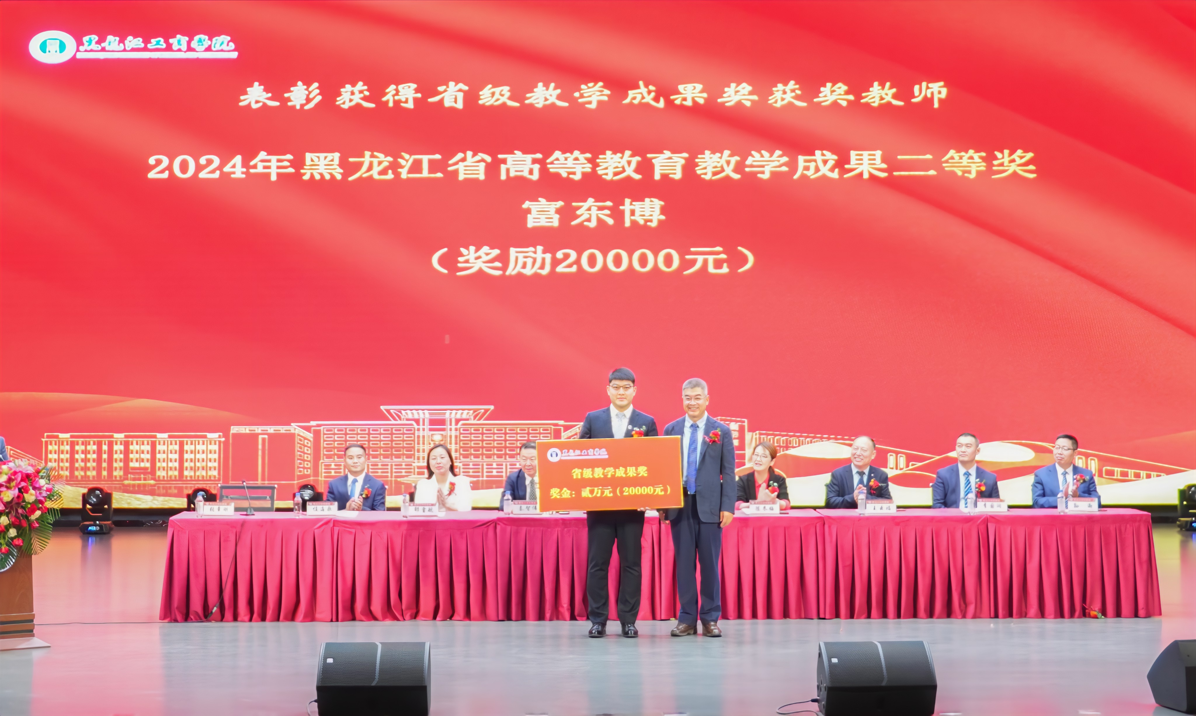 表彰先进,礼赞奉献。校领导依次宣读了《关于表彰2025年度师德先进集体和先进个人的决定》《关于表彰2024—2025学年度“三育人”先进集体和先进个人的决定》以及2024年黑龙江省高等教育教学成果奖获奖文件,为获奖集体和个人颁发了荣誉证书。荣获师德建设先进集体、师德先进个人、“三育人”先进集体与个人、省级教学成果奖、各级各类竞赛奖、学科竞赛优秀指导教师以及“校园安全先锋”等荣誉的教师代表们依次上台领奖。全场报以热烈掌声,向他们的辛勤付出和卓越贡献致敬。