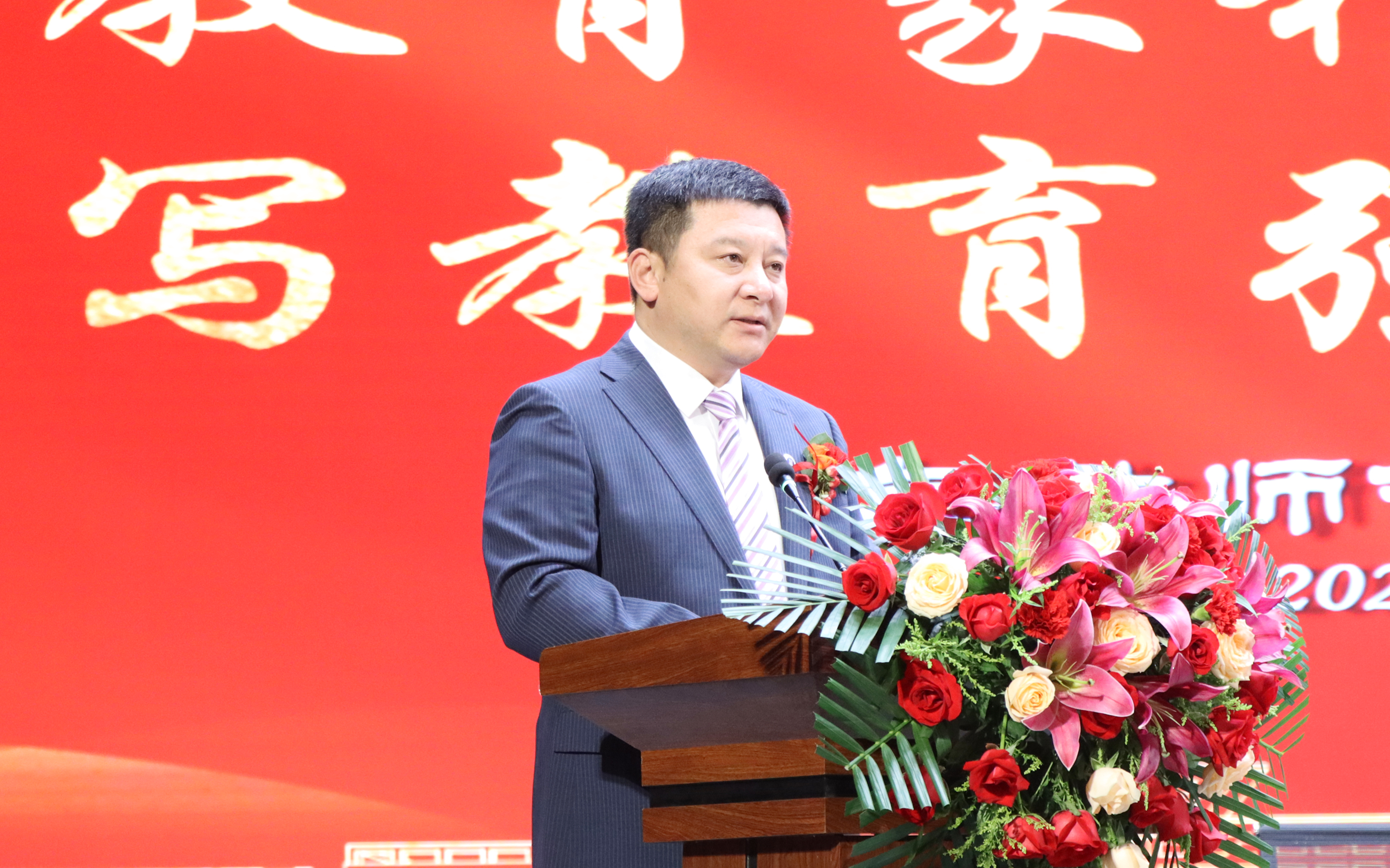 理事长、校长刘来祥发表了热情洋溢的讲话。他首先代表学校向受表彰的先进集体和个人致以崇高敬意,并向全体教职工送上节日祝福,并回顾了学校过去两年在教学领域取得的丰硕成果,指出全校教师在省级以上教学竞赛中斩获28项荣誉,获奖62人次,实现了教学单位全覆盖。他强调,正是这支师德师能俱佳的教师队伍,在教学创新、课程思政、青年教师培养等方面取得了历史性跨越,成功将教师的教学优势转化为学生的成才优势,铸就了学校立德树人,高质量发展的坚实基础。