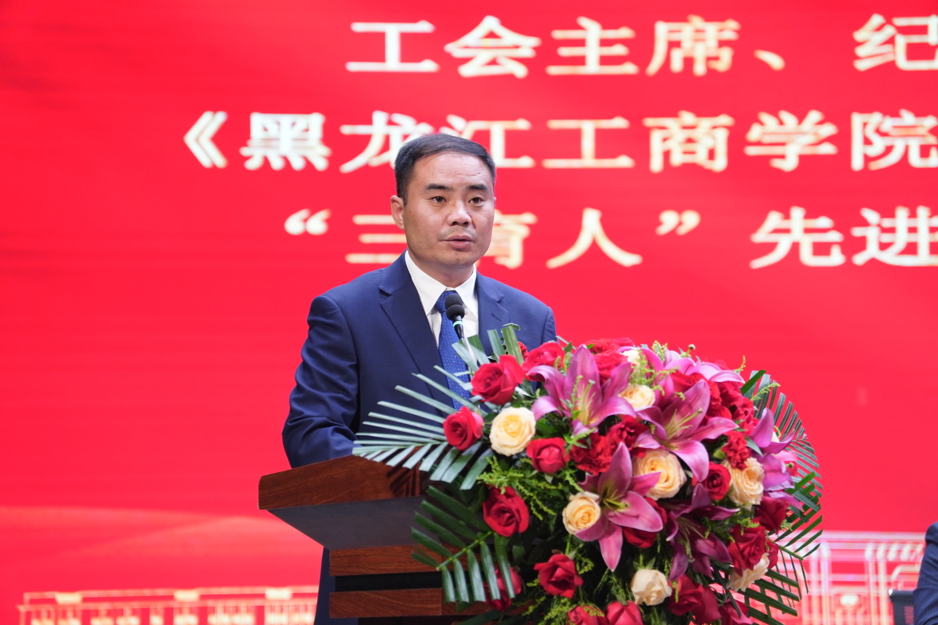 智能制造与交通工程学院教师张宏鹏作为师德先进个人代表发言,他分享了自己“把课堂建在需求上,把学生放在心尖上,把成长刻在征途上”的育人感悟。商学院院长张家琳代表“三育人”先进集体发言,表示学院将坚守初心,持续探索“党建引领师德、师德驱动育人”的特色路径,努力以高尚师德引领学子成长。