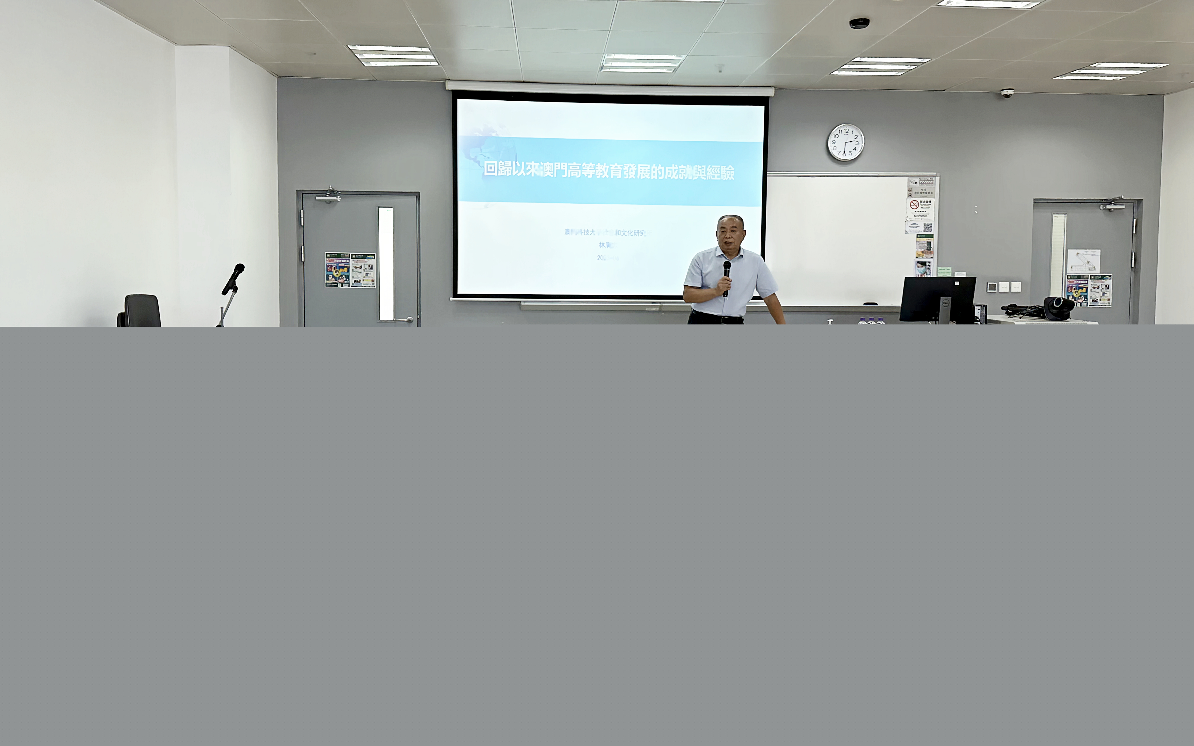 培训首日下午,澳科大社会和文化研究所所长林广志教授以“回归以来澳门高等教育发展的成就与经验”为题作学术报告,详细介绍了澳门的高等教育发展历程、现状和未来发展机遇挑战,使学员对澳门高等教育及“教育、科技、人才”一体创新发展有了更深的认识和更广的思索。