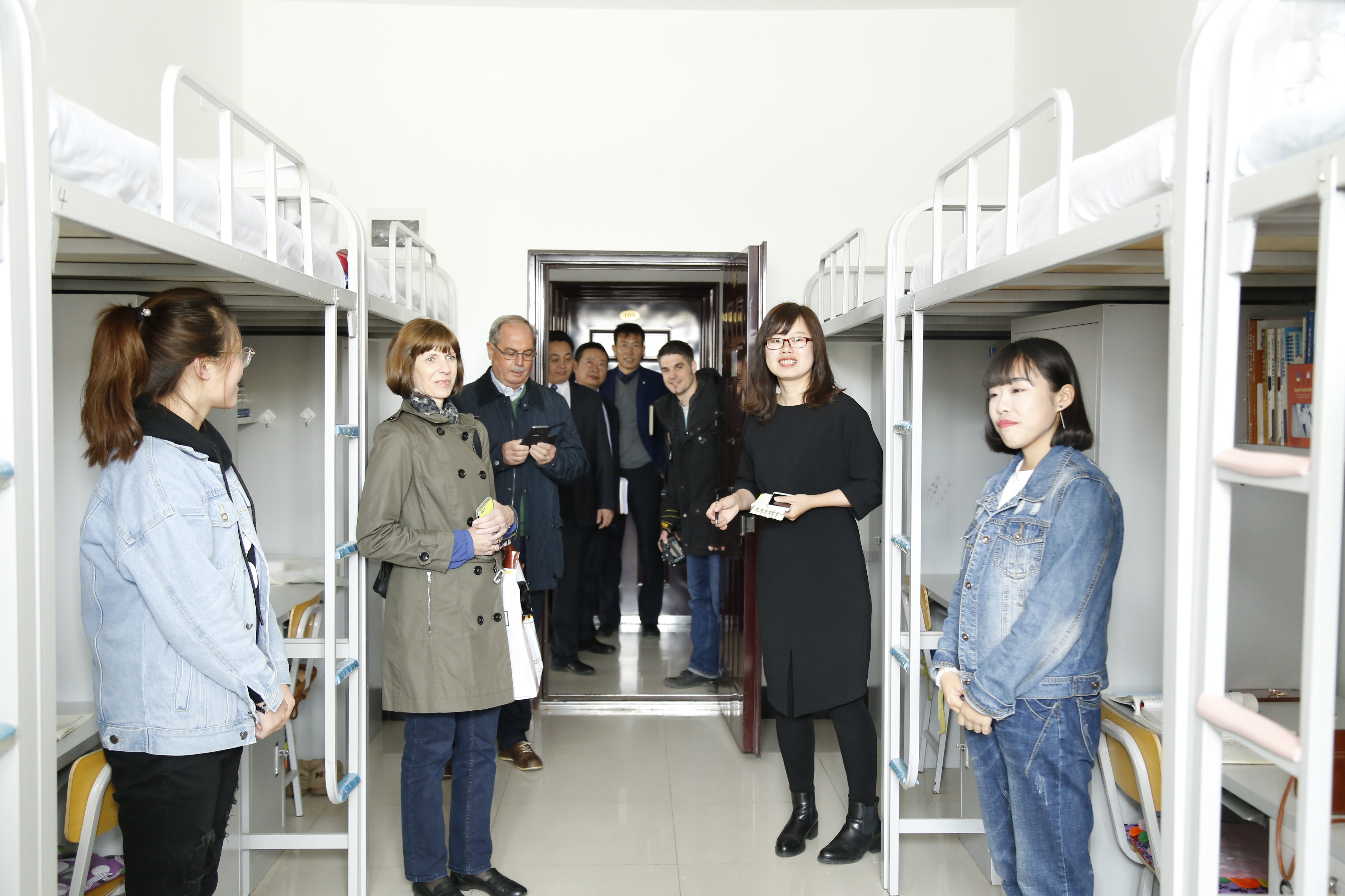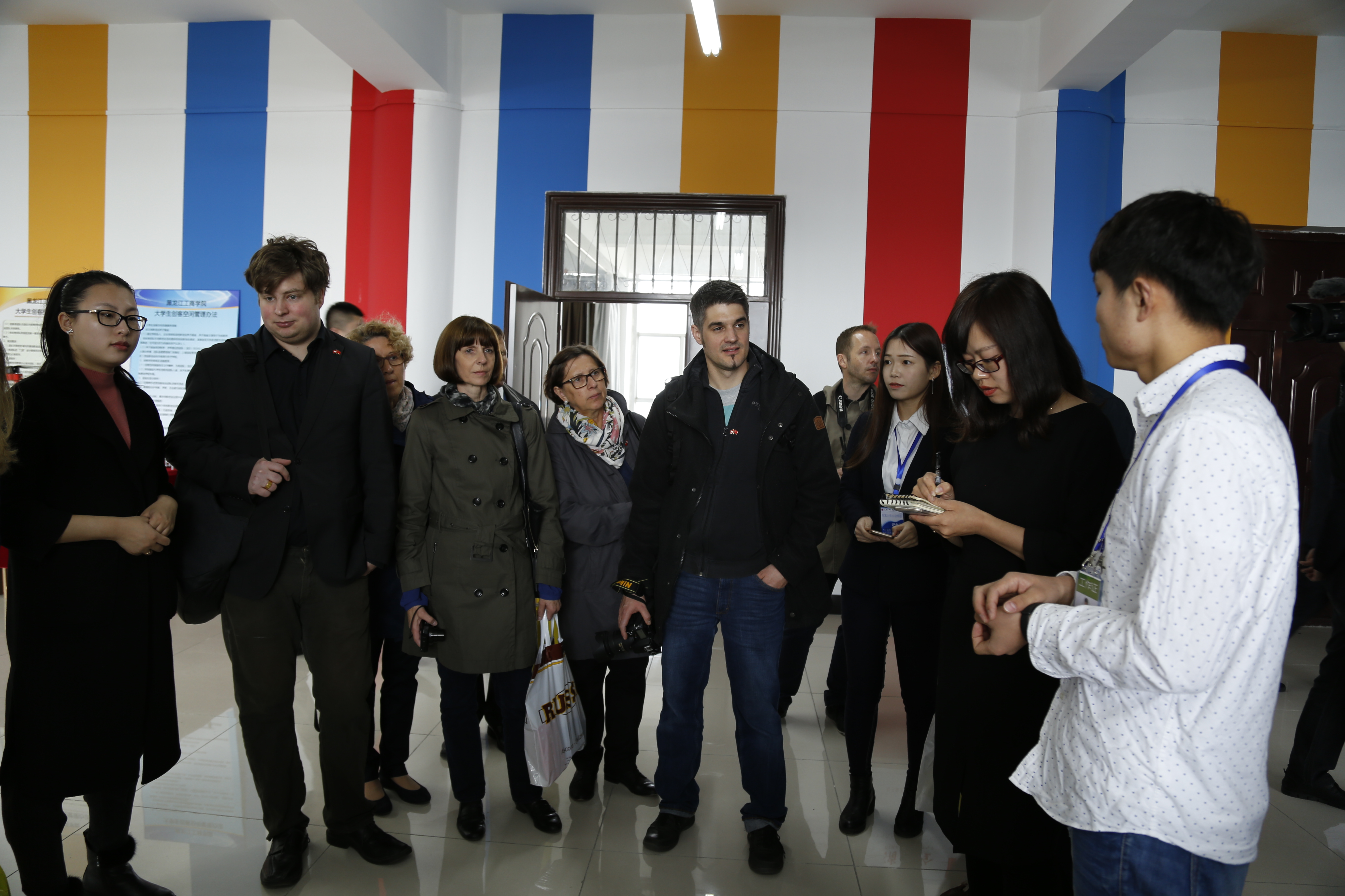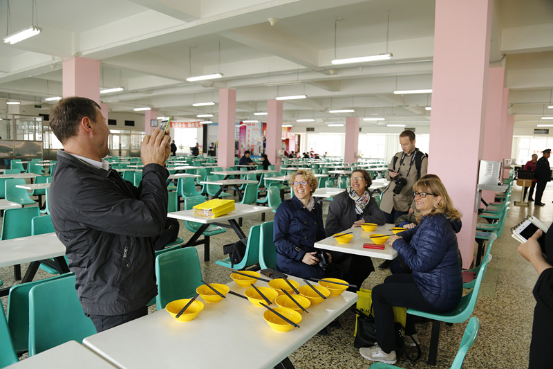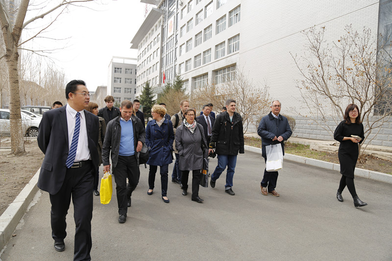 在鲁迪·努奇院长作《教学质量监控与绩效考核机制》演讲的同时,其他瑞士专家在副院长赵金波的陪同下,参观了我校校园,艺术与传媒类专业、工商管理类专业、经济类专业的实习实训中心,大学生创客空间,学生宿舍楼、食堂,并与师生进行了交流互动。