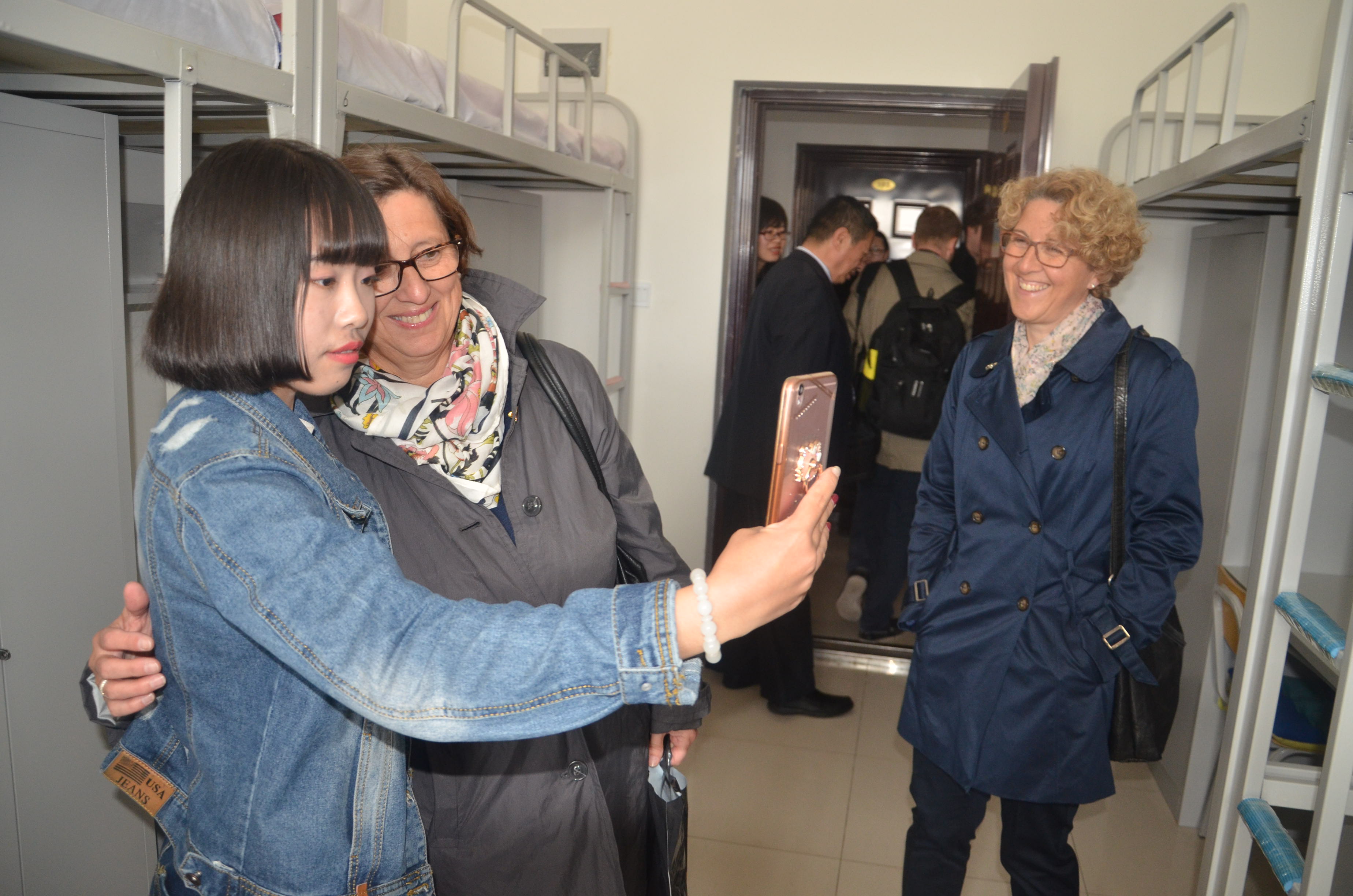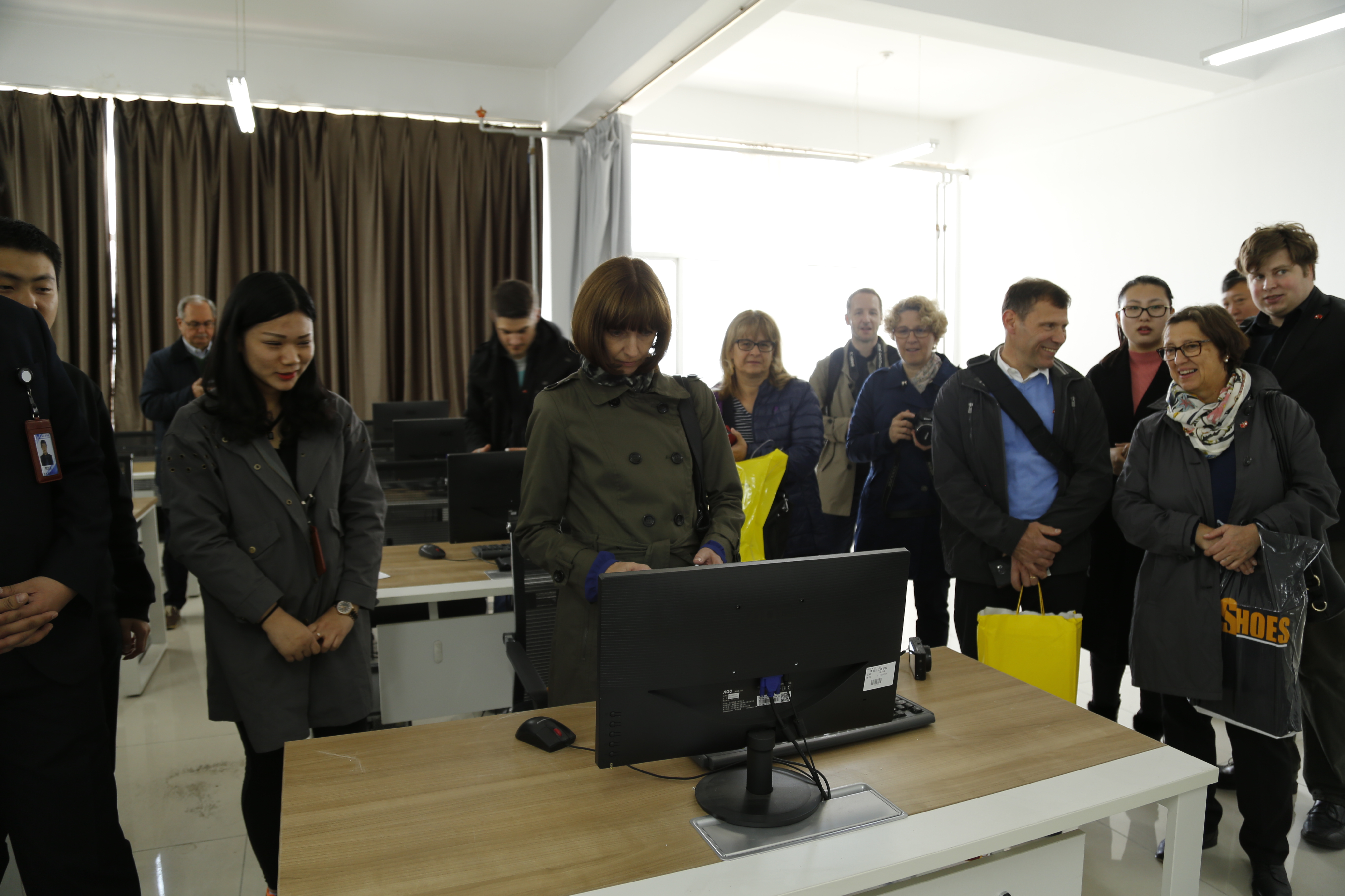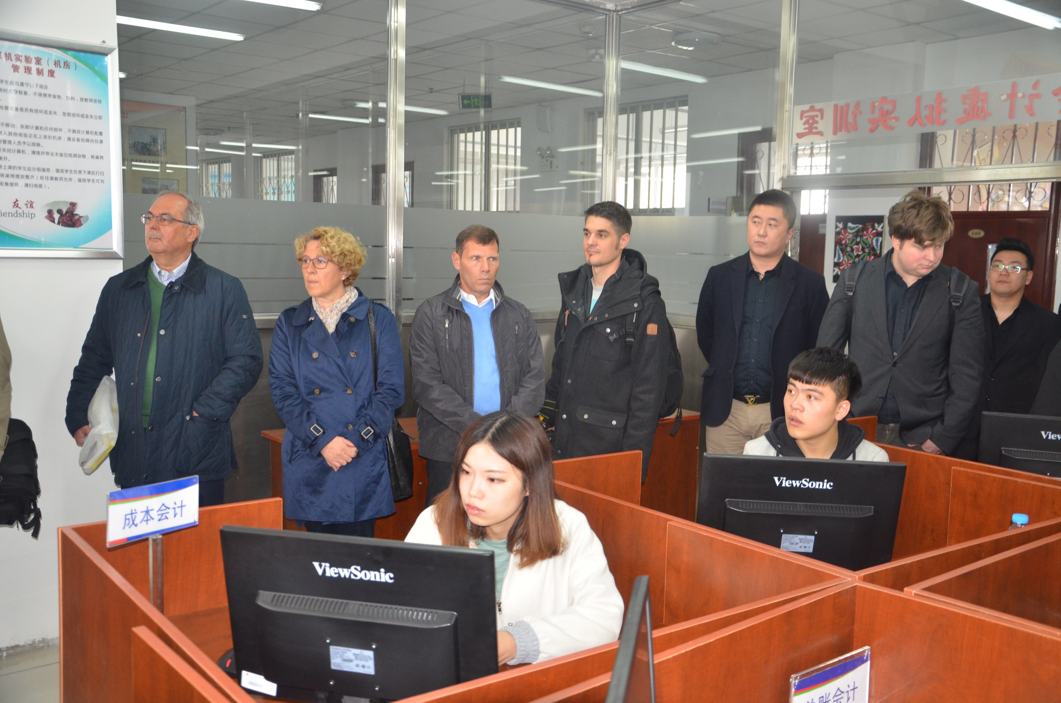 在鲁迪·努奇院长作《教学质量监控与绩效考核机制》演讲的同时,其他瑞士专家在副院长赵金波的陪同下,参观了我校校园,艺术与传媒类专业、工商管理类专业、经济类专业的实习实训中心,大学生创客空间,学生宿舍楼、食堂,并与师生进行了交流互动。
