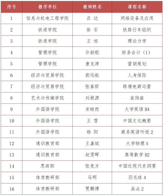 线上教学,同样出彩!日前,为充分发挥教学示范引领作用,表彰在疫情防控期间线上教学表现突出的授课教师,激励广大教师爱岗敬业,促进教育教学信息化手段应用,学校开展了“线上教学优秀教师”评选活动。经教师自主申报、各学院(部)推荐、校内专家评审,共评选出16位线上教学优秀教师。这些优秀教师教学理念先进、教学方式新颖、教学效果良好,受到师生一致好评。