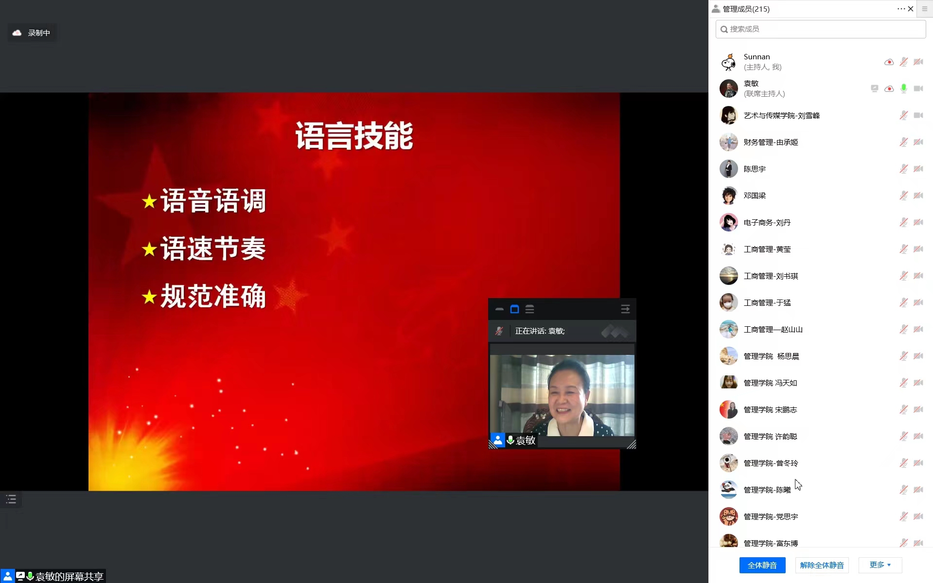 在讲座上,袁敏围绕行为示范、敬业爱生、提高能力等三个方面分享经验体会。袁敏鼓励广大教师不断提高教学能力、注重培养科研能力、巧妙提高管理能力,借助丰富的线上资源充实自身的学识与视野,做有理想信念、有道德情操、有扎实学识、有仁爱之心的“四有”好老师。袁敏表示,高校教师应兼具家国情怀与教育情怀,自觉承担立德树人的光荣使命,并严以律己,通过高尚的人格魅力赢得学生的尊重信赖。教师应心怀对教育事业的热忱,勤勤恳恳、精通专业、热爱教学,用敬业、精业、乐业的精神吸引学生,用尊重与信任的态度关爱学生。