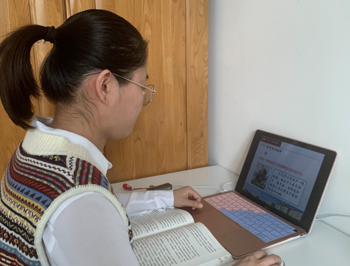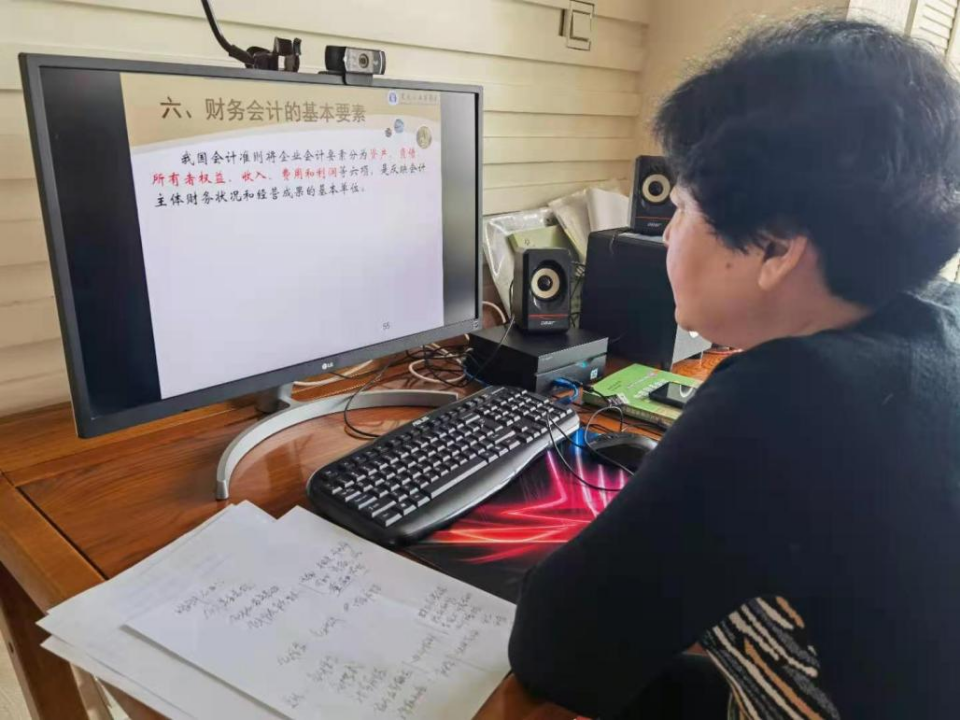 提升教师课堂教学的有效性是当前开展混合式教学课程改革的关键。经济与贸易学院教师杨霄认为,线上课程并不是传统课程的完全复制,线上教学应结合所教授课程的特点,对知识点进行梳理并设计相应的教学环节,才能高质量的完成教学内容。杨霄积极尝试开展“分段式”教学设计。将45分钟的课堂教学内容分割成若干个知识点,让学生进行碎片化学习。一个知识点学习完毕即进行互动答疑,借助于线上教学平台的随机选人、抢答、随堂练习以及话题讨论等检验学生对于知识点的掌握效果。 注:宋伟灵在线授课 注:杨慧在线授课