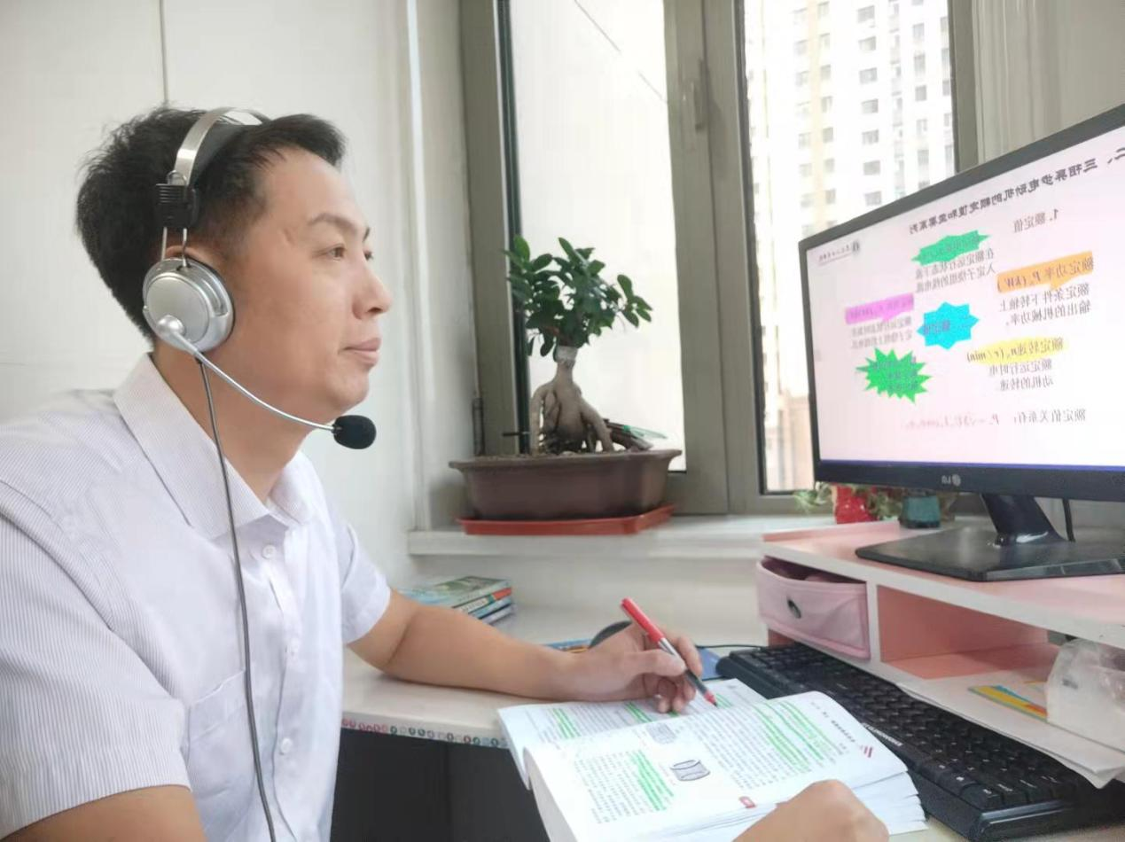 为了实现更好的学习效果,外国语学院教师宋伟灵在课下通过钉钉群、微信群为学生补充额外听力练习材料,监督学生完成作业,及时对作业情况予以点评。艺术与传媒学院教师杨慧在《包装设计》《印刷与制作》《矢量图形绘制》课程中,精心打造项目设计“云”平台。依托该平台,在集中展示学生课堂作业同时,师生可以实时互动交流,对每一个作品进行优缺点的点评,以此激发学生创作灵感,提升学生设计能力。 注:孙艳璞组织教研室教师线上集体备课 注:李广伟在线授课