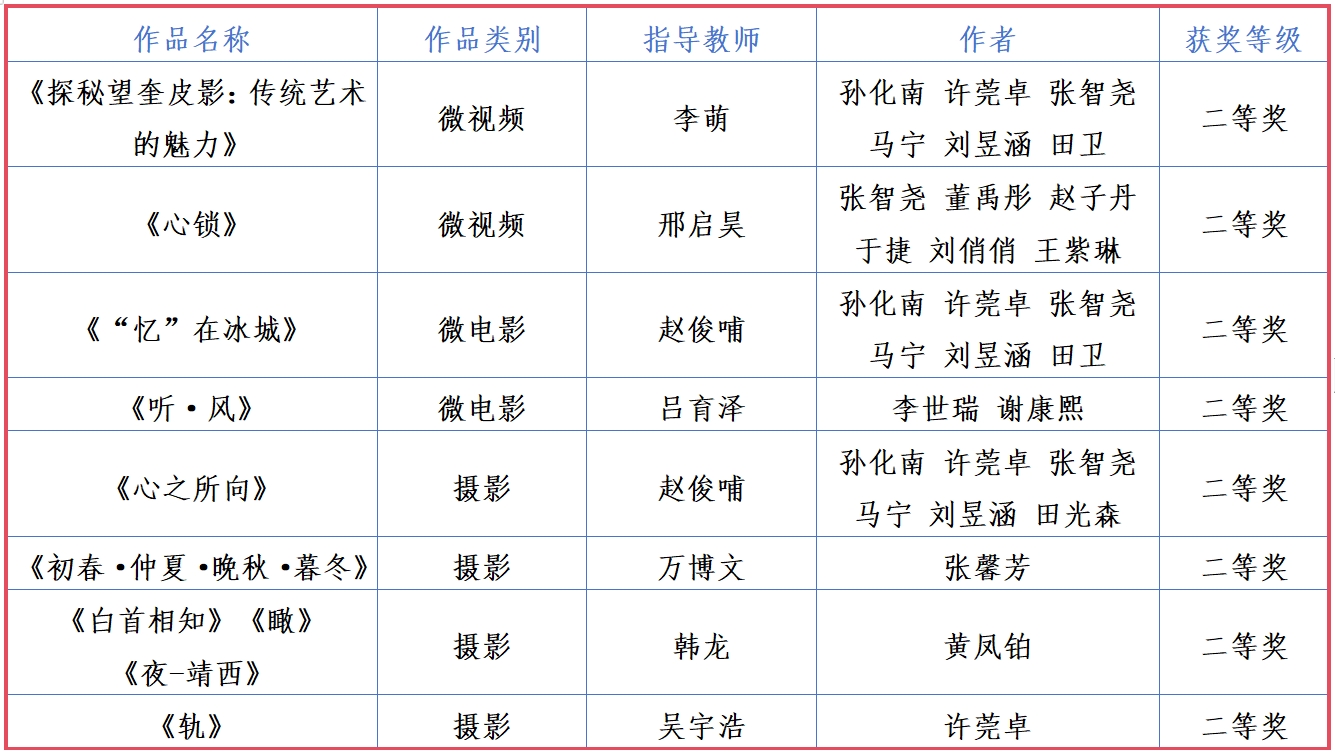 日前,由省委教育工委、省委网信办主办,省高校网络思政工作中心承办的第七届全省大学生网络文化节评选结果揭晓,由我校选送的作品共获得二等奖13项、三等奖6项。获奖等级、获奖数量再创新高,同时,我校21个优秀作品被推荐参加第七届全国大学生网络文化节评选。