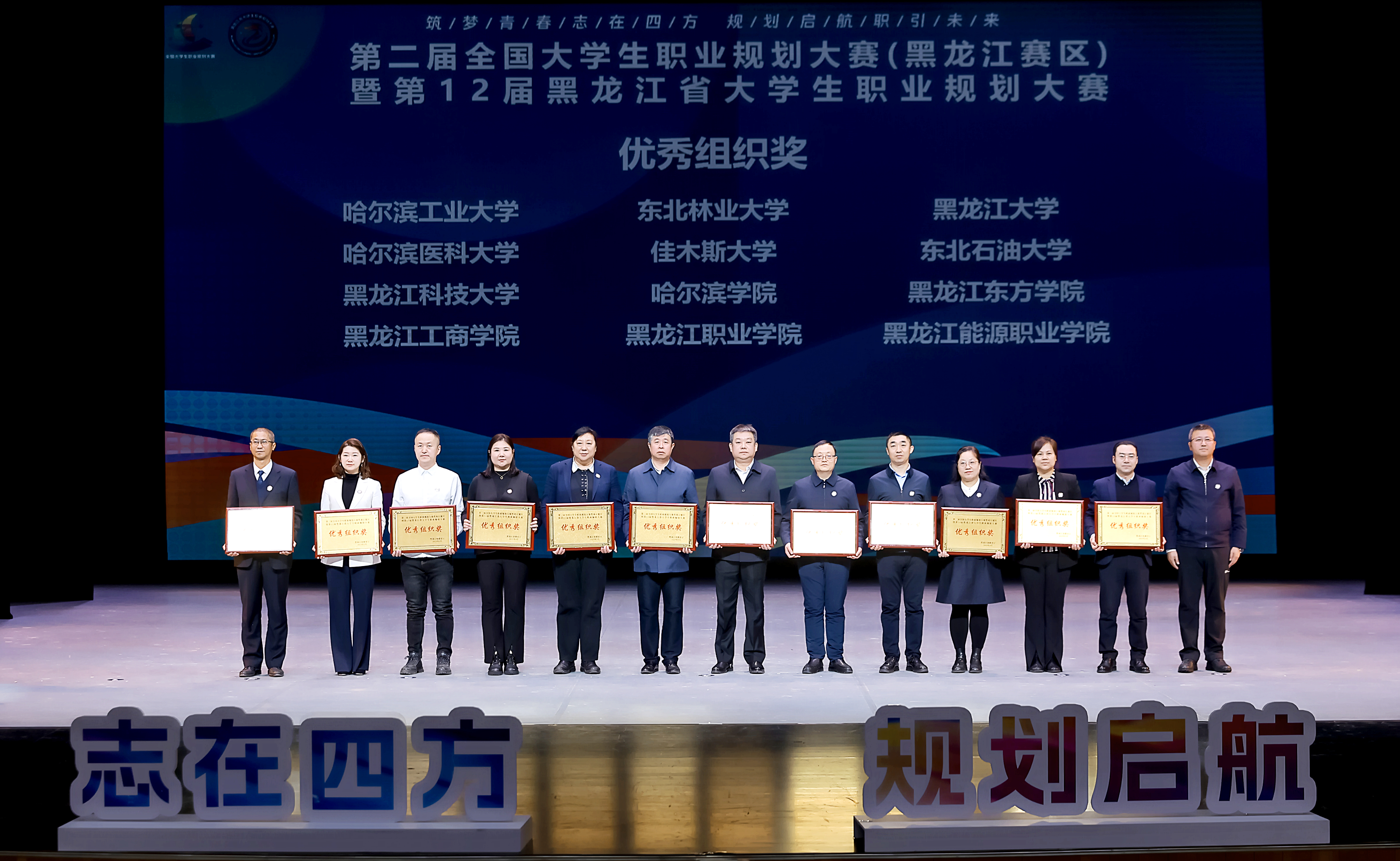 近日,第二届全国大学生职业规划大赛(黑龙江赛区)暨第十二届黑龙江省大学生职业规划大赛圆满落幕。本届赛事由黑龙江省教育厅主办、哈尔滨工业大学等高校联合承办,以“筑梦青春志在四方,规划启航职引未来”为主题,吸引全省78所高校34.6万名在校大学生参赛。经过激烈角逐,我校2022级广播电视编导专业李尚荣同学荣获就业赛道银奖,学校获评优秀组织奖,校长助理邢兆荣代表学校出席颁奖典礼。