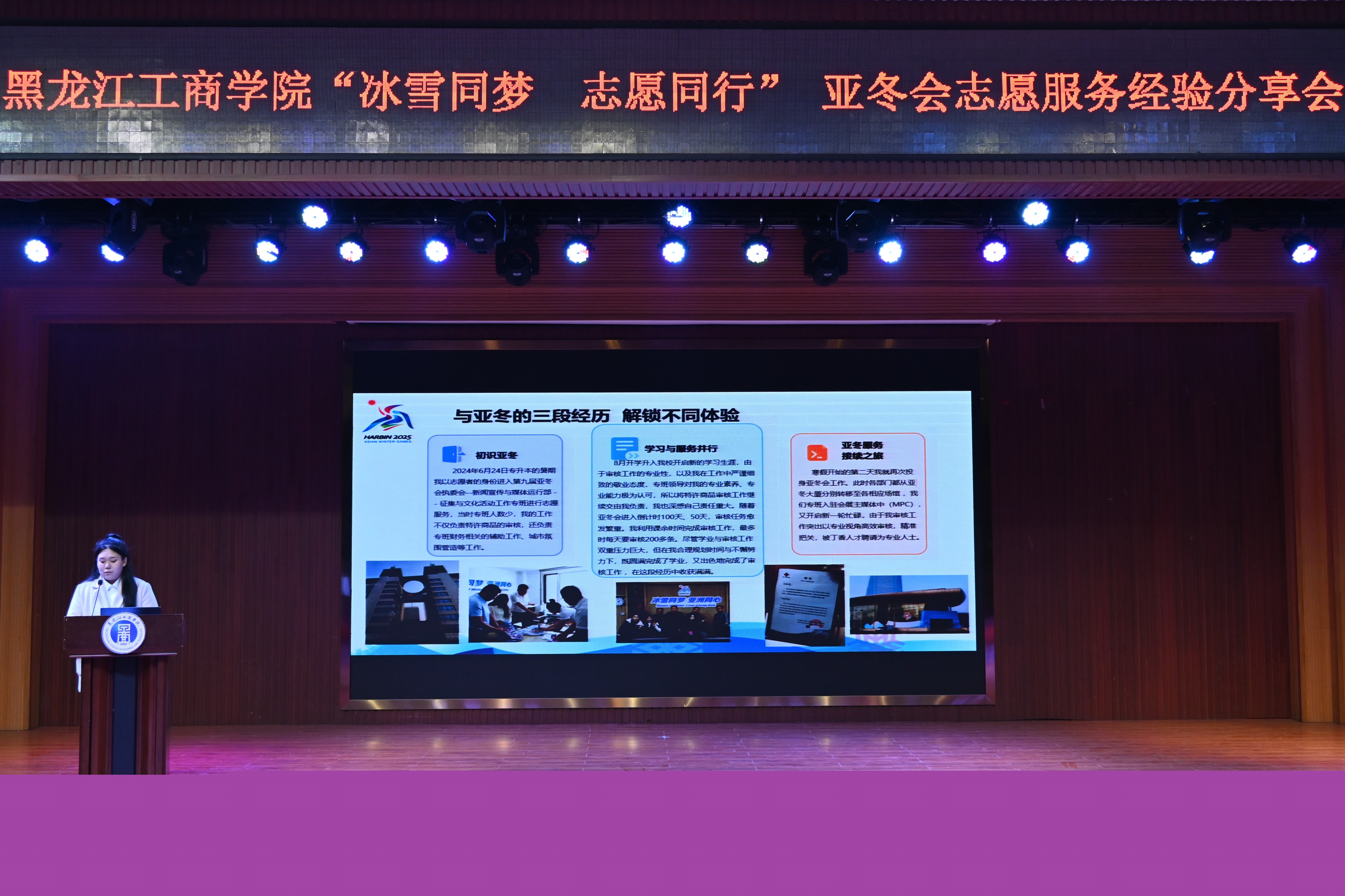 张瑀晴同学作为官方品牌形象审核组长,讲述了她如何以专业视角审核2370余项特许商品,确保亚冬会品牌形象统一的幕后付出。获评为亚冬会城市侧志愿者“勤勉奉献”之星的马晓棠马同学则回忆了连续40天奋战在侵华日军第七三一部队陈列馆一线,为海内外嘉宾提供细致服务的难忘经历。乔子轩同学分享了从近万名报名者中脱颖而出,成为亚冬圣火采火使者的成长历程,30天集训的汗水与最终火炬传递的荣光交织成青春最美的旋律。段洋同学则用流利的英文服务运动村票务工作,分享了用专业知识服务赛事的实践经历。