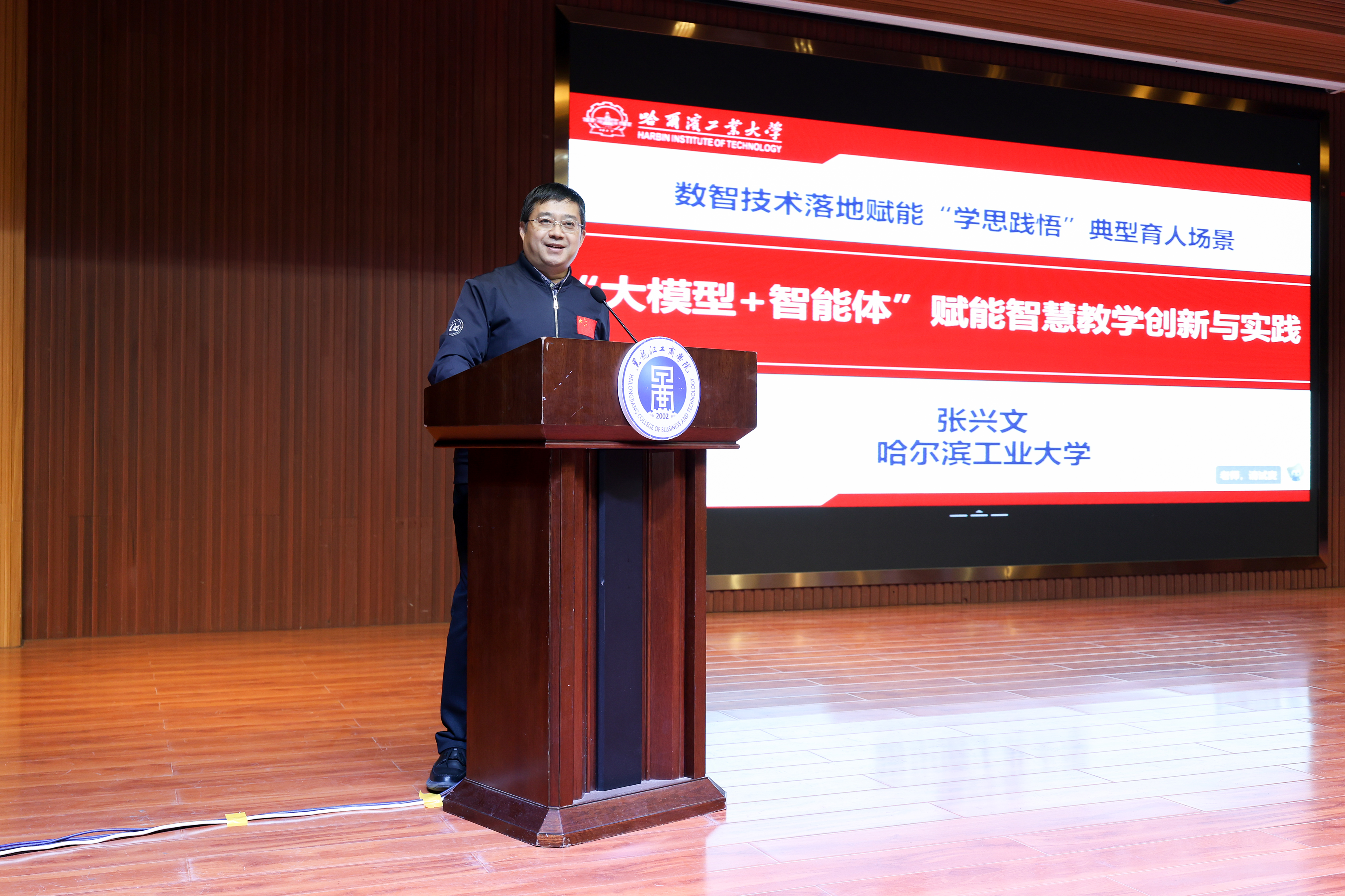 培训特邀黑龙江省教学名师、国家一流课程负责人张兴文教授作专题报告。张教授深耕“AI+化学”科教融汇领域,2025年荣获首届全国高校教师数智教育创新大赛特等奖,其成果入选《2025智能教育发展蓝皮书》优秀案例。报告中,他以“学科大模型优化”为切入点,系统阐述了如何构建适配学科特色的多智能体教学资源,并通过“学-思-践-悟”育人环节的典型案例,生动展示了智能体在个性化学习指导、科研思维培养等场景的应用模式。他强调:“AI不是替代教师,而是通过‘学科模型+多智能体’构建协同生态,让教师从重复性工作中解放,更聚焦创新性教学活动。”