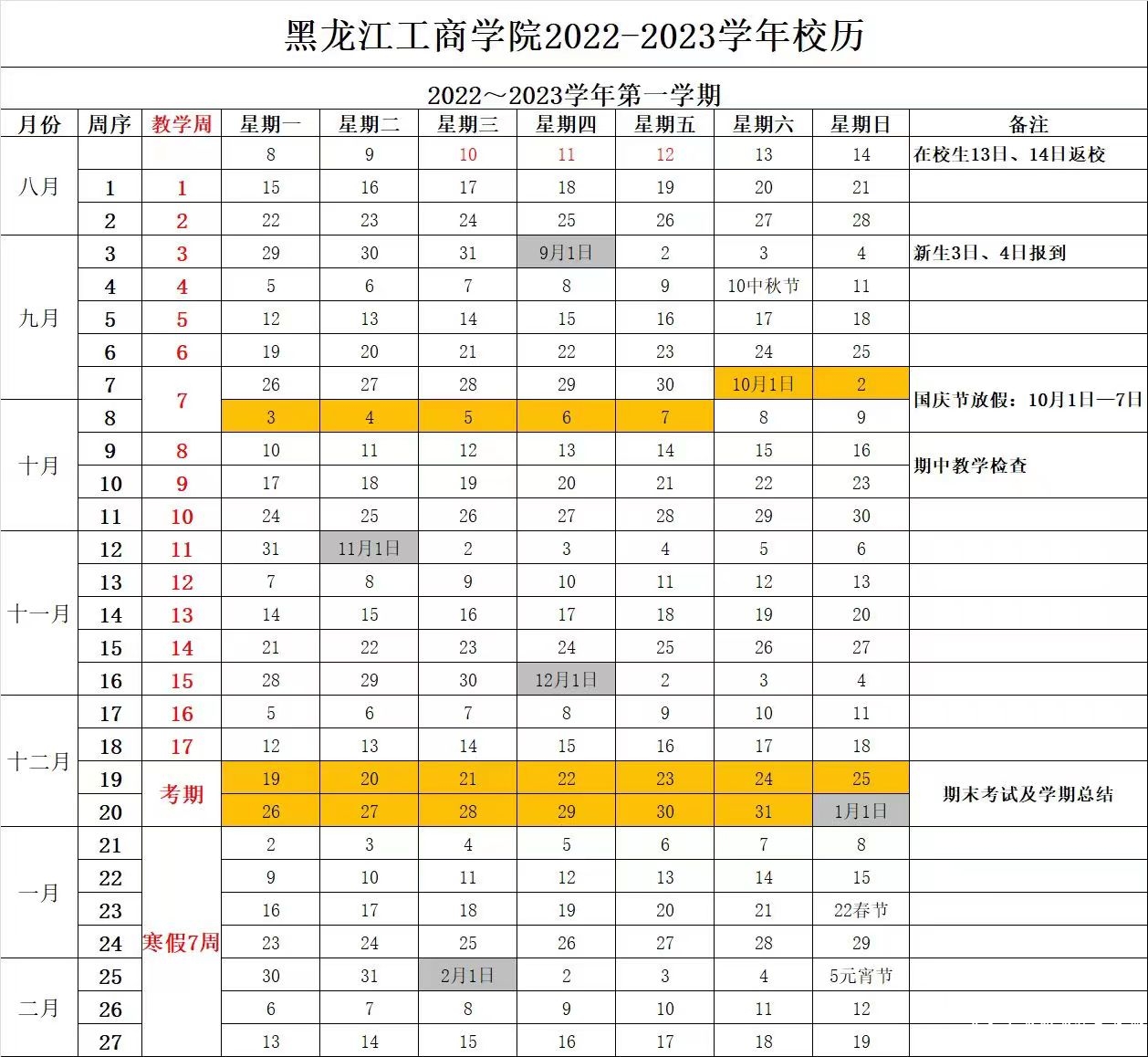 m体育【中国】股份有限公司2022-2023学年第一学期校历