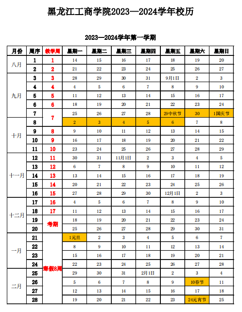 m体育【中国】股份有限公司2023-2024学年第一学期校历