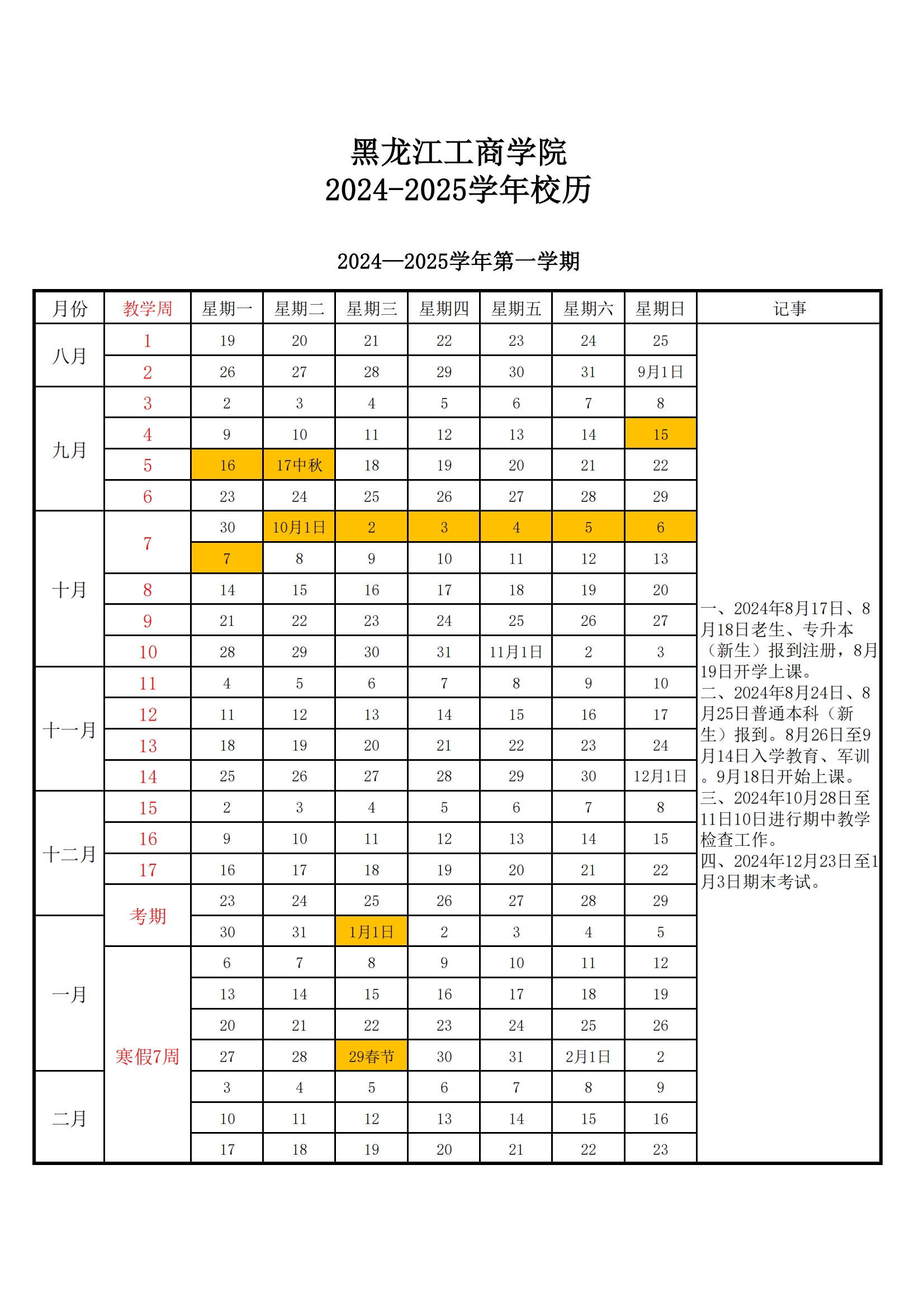 m体育【中国】股份有限公司2024-2025学年第一学期校历