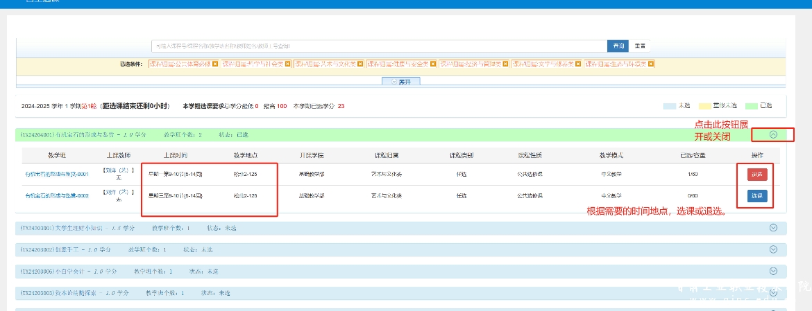3.本次未能选够门数的学生,可等待第二轮次选课。