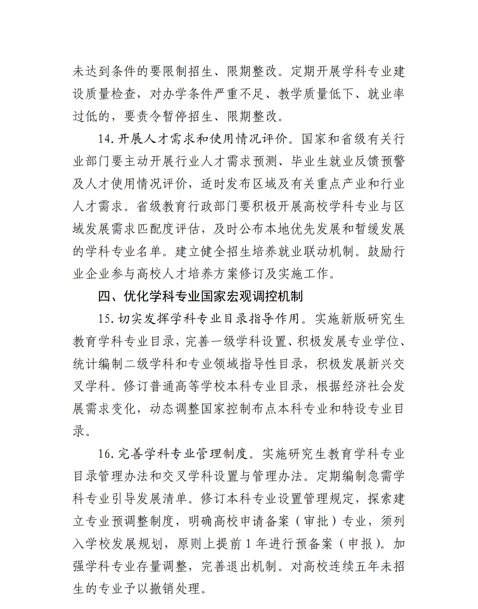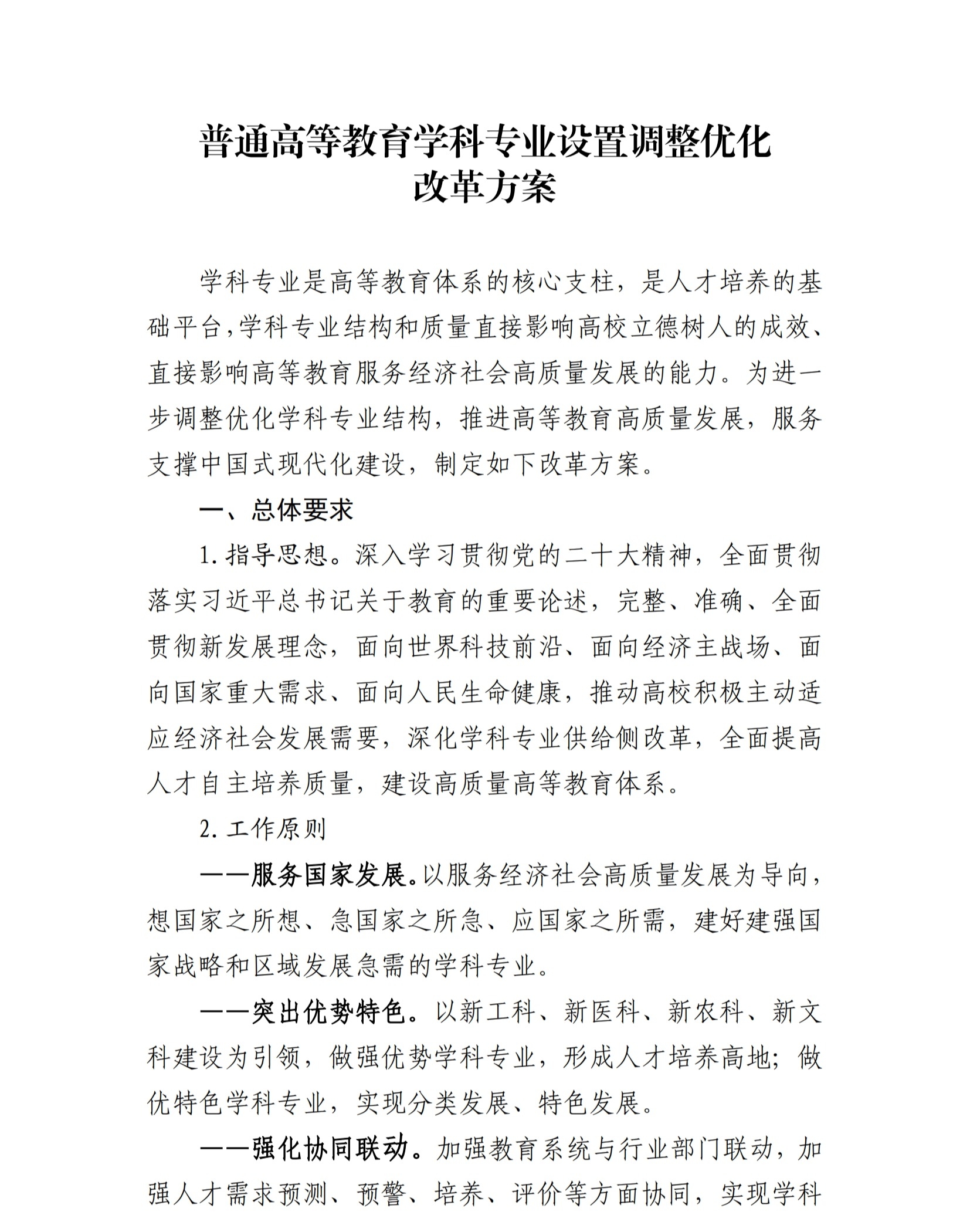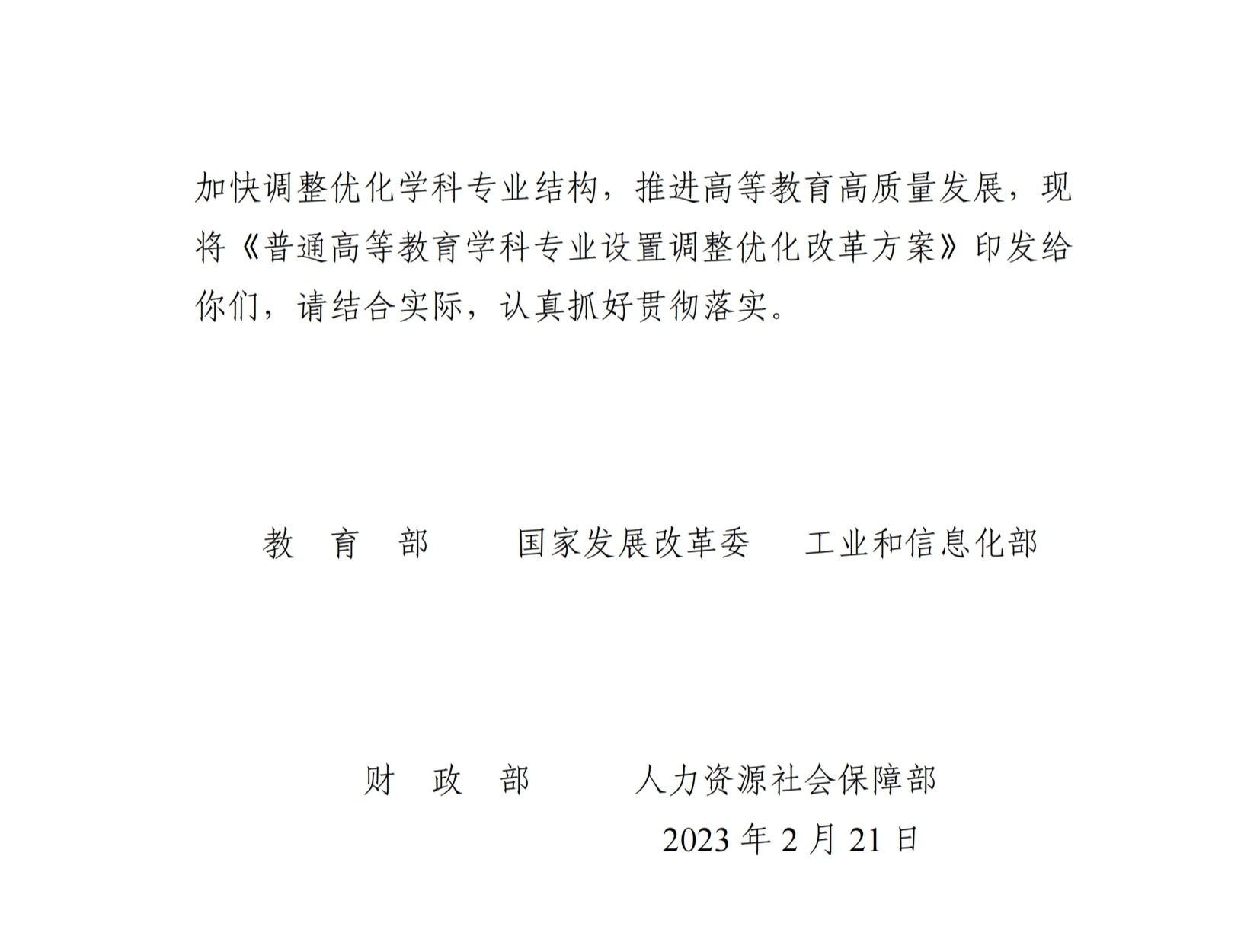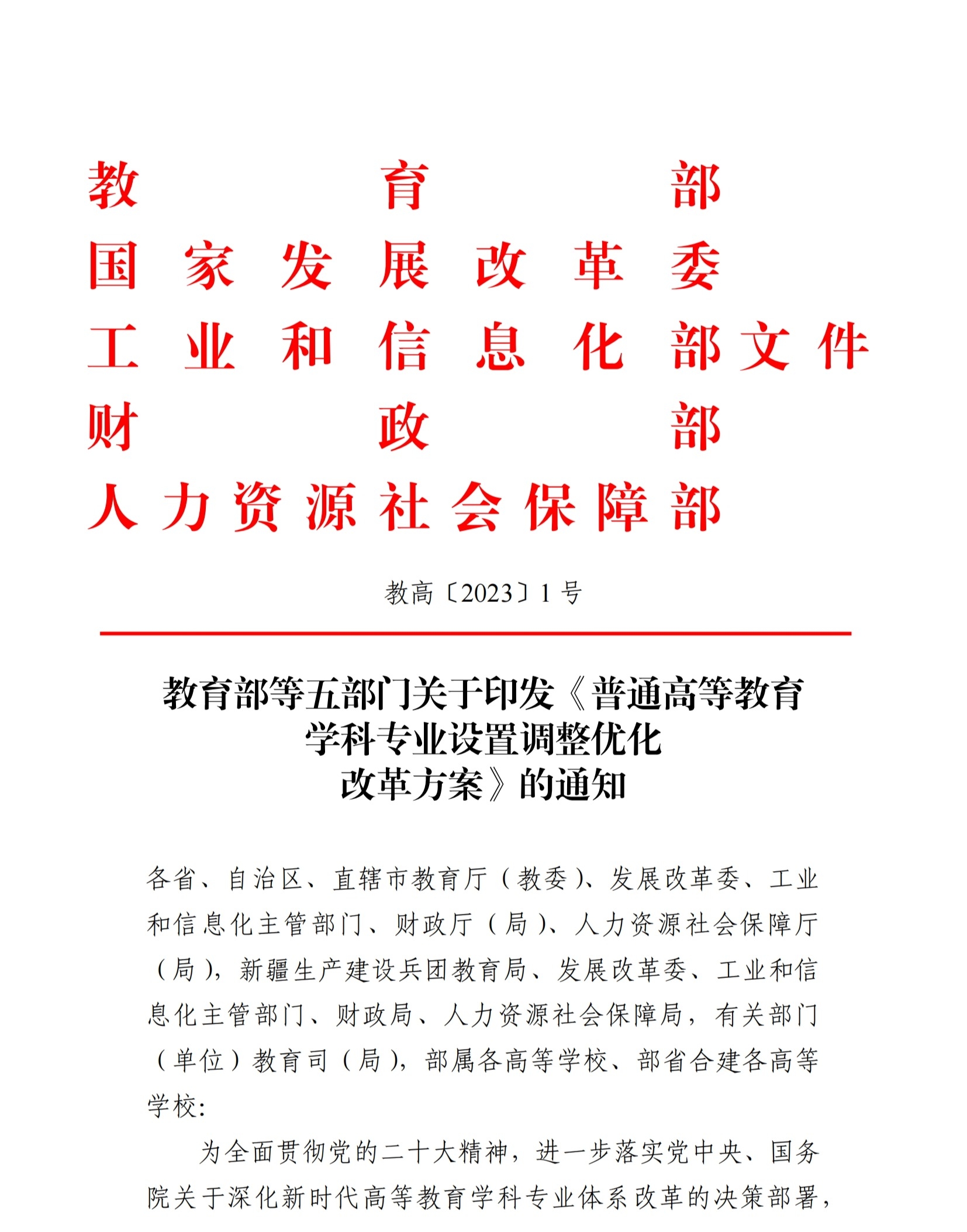 教育部等五部门关于印发《普通高等教育学科专业设置调整优化改革方案》的通知