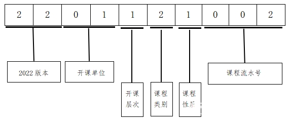 例如:课程编号2201121002,表示该课程由信息与机电工程学院的课程流水号为002的专业必修课。具体格式如下图示: