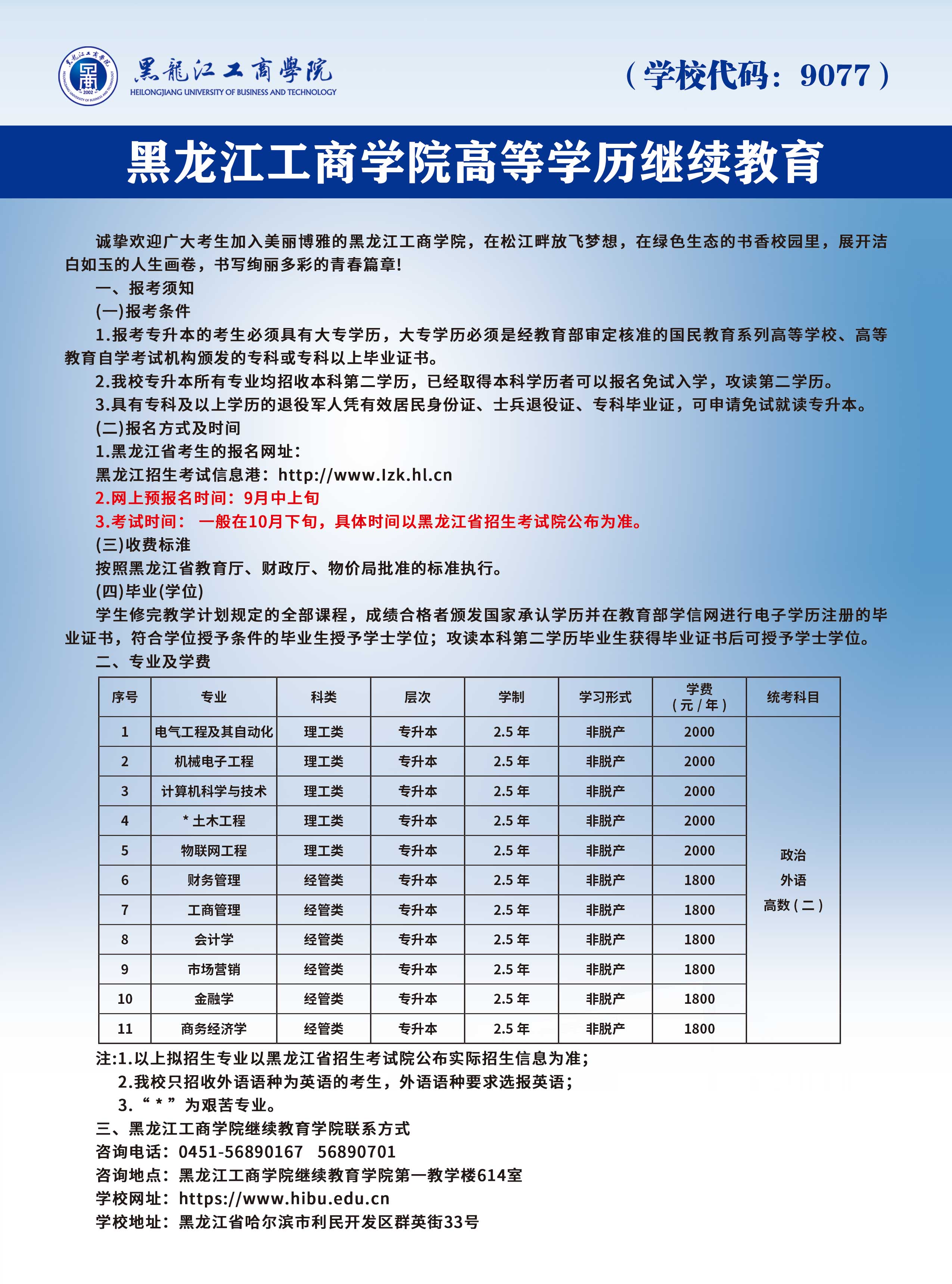 3.考试时间:一般在10月下旬,具体时间以黑龙江省招生考试院公布为准。