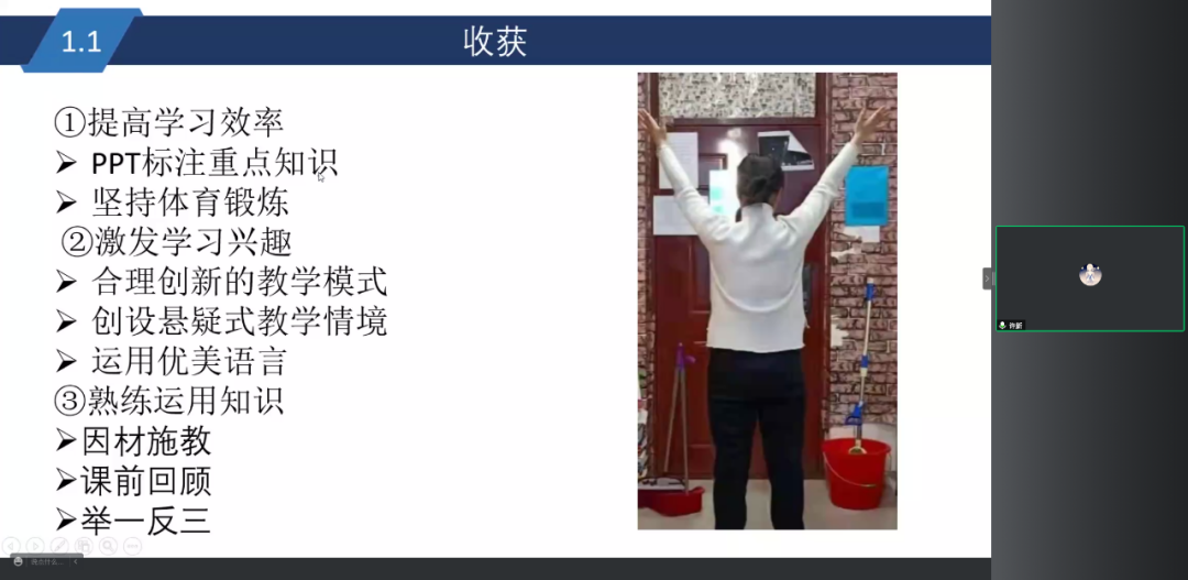 外国语学院杨阳重点介绍了基于“雨课堂”平台的课堂组织、课程设计、网络资源利用等授课方法,同时,为了让学生时刻感到教师“就在眼前”,杨阳不仅准备了大量的三维动画、图片、视频,边讲边播,边播边研讨,每每讲到关键处,她还如同在讲台上一样,肢体语言丰富,神采飞扬、充满激情。