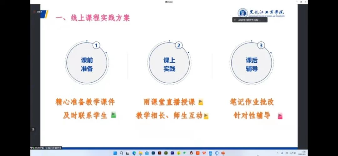 会上,宋威、吕达、张宪丽、唐龙涛、许韵聪、贾欣宇、王丹、刘根源、杨阳、李林泽、白琳、杨磊等来自各学院和教学部的12位老师分享了线上教学经验心得体会和下一阶段做好线上教学的意见建议、对策思考。