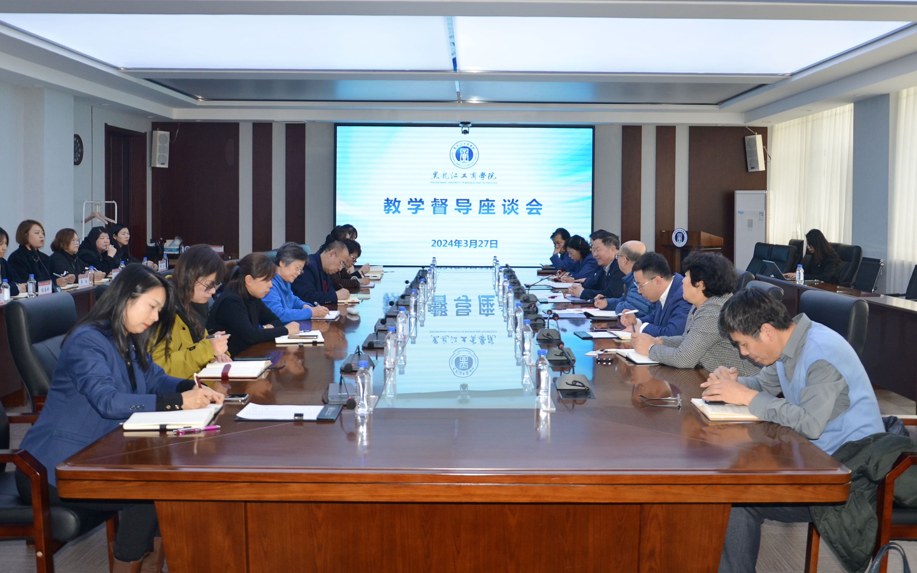 为推动学校本科教学工作合格评估,进一步加强教学质量监控,及时了解和掌握教学督导对学校教学工作、教学资源以及学生学风等方面的意见和建议。3月27日下午,学校在松北校区第一教学楼7楼会议室召开教学督导座谈会,校长秦智伟、副校长孙智慧、邵雪航出席会议,校院两级督导、教务处、教学质量监控与评估中心相关人员参加会议。