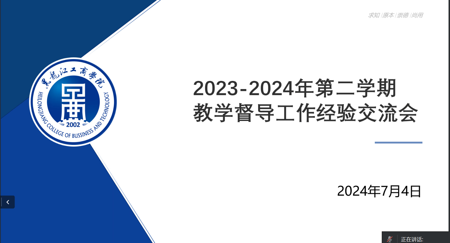 在经验交流环节,铁道学院侯秀梅、商学院郑莹、外国语学院宋薇等督导老师,结合自身的督导工作,分享了经验与心得,对存在的问题进行了剖析,并提出了建议。大家一致表示,将全力以赴为提升我校教育教学质量贡献力量。